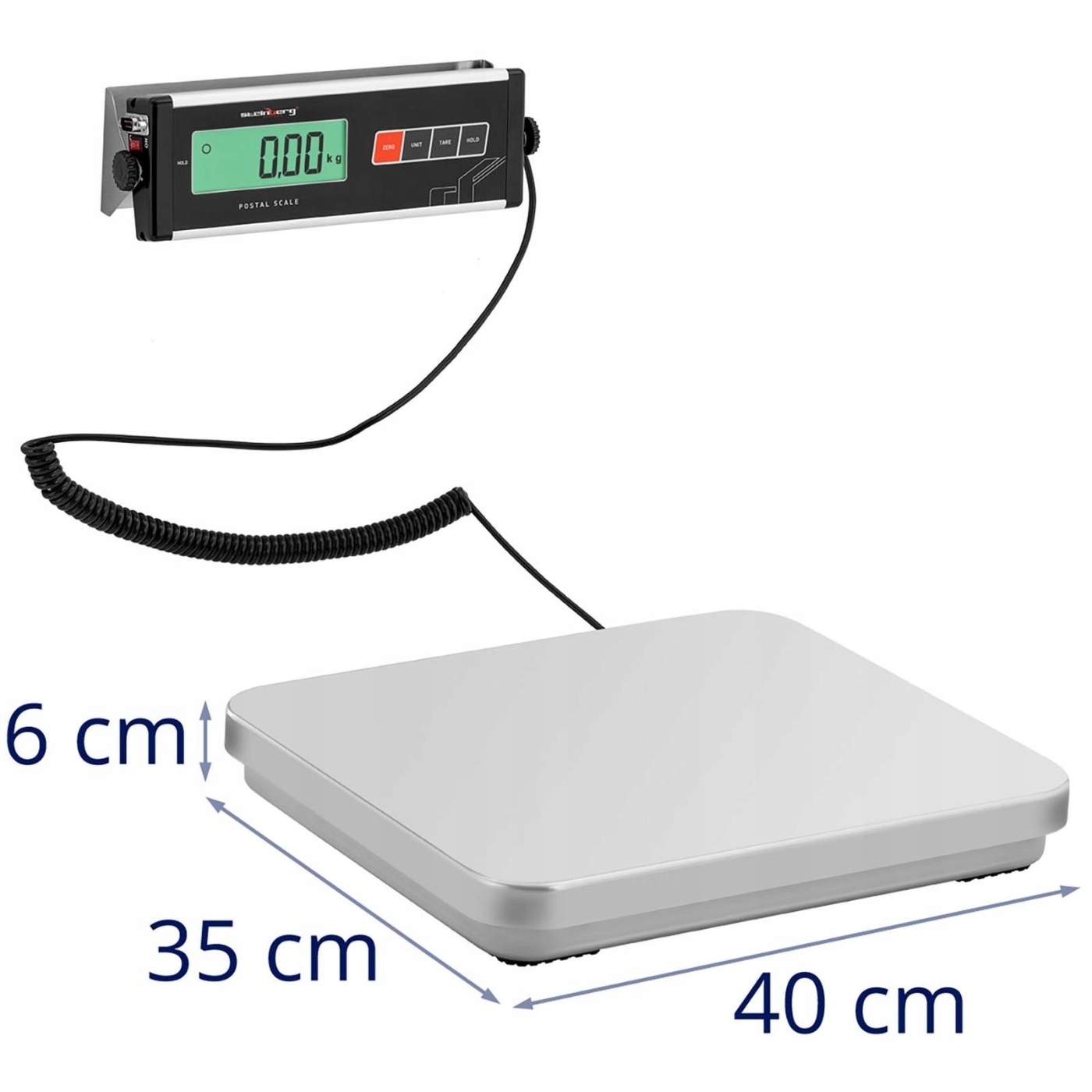 При розробці поштових ваг велика увага приділялася компактній конструкції. На поверхні для зважування з нержавіючої сталі розміром 355 x 405 мм у вас є багато місця для посилок, вантажів і багатьох інших стандартних товарів. Чотири датчики навантаження, що забезпечують результати вимірювання в класі точності 3, гарантують надійність результатів. Завдяки плоскій конструкції ви можете підняти всі вантажі на поверхню ваги з невеликими зусиллями.