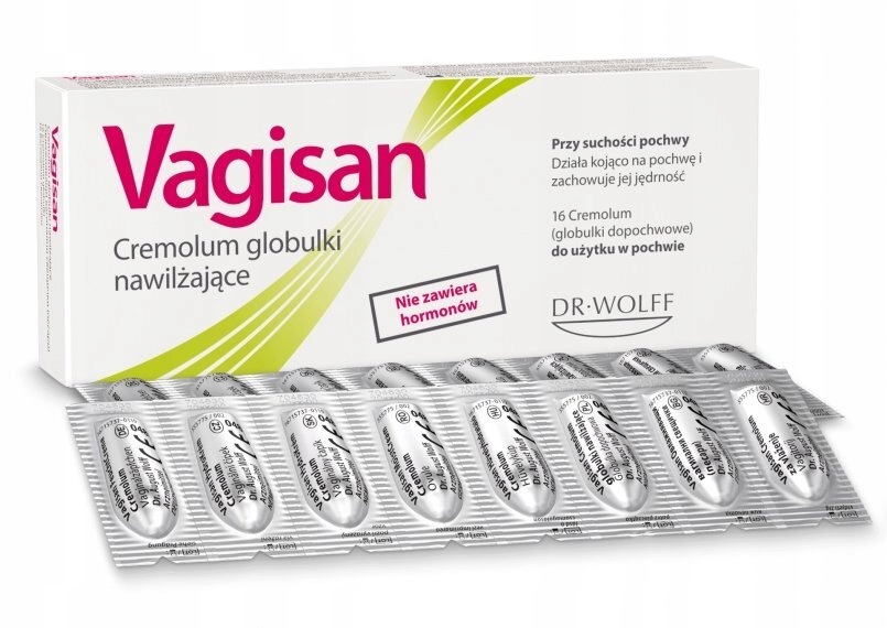 Vagisan Cremolum - це вагінальні кульки, які розчиняються після введення у піхву, утворюючи гладкий заспокійливий крем. Полегшує такі симптоми, як сухість, печіння, свербіж, дрібні рани та біль у піхві, що є результатом сухості, викликаної різними причинами. Глобули містять буфер, що складається з молочної кислоти та лактату кальцію, який надає крему pH 4,5, таким чином допомагаючи підтримувати здорове вагінальне середовище. Вагісан Кремолум не містить гормонів, тому при необхідності їх можна застосовувати разом із замісною гормональною терапією або чергувати з кремами чи вагінальними песаріями, що містять гормони (естрогени).