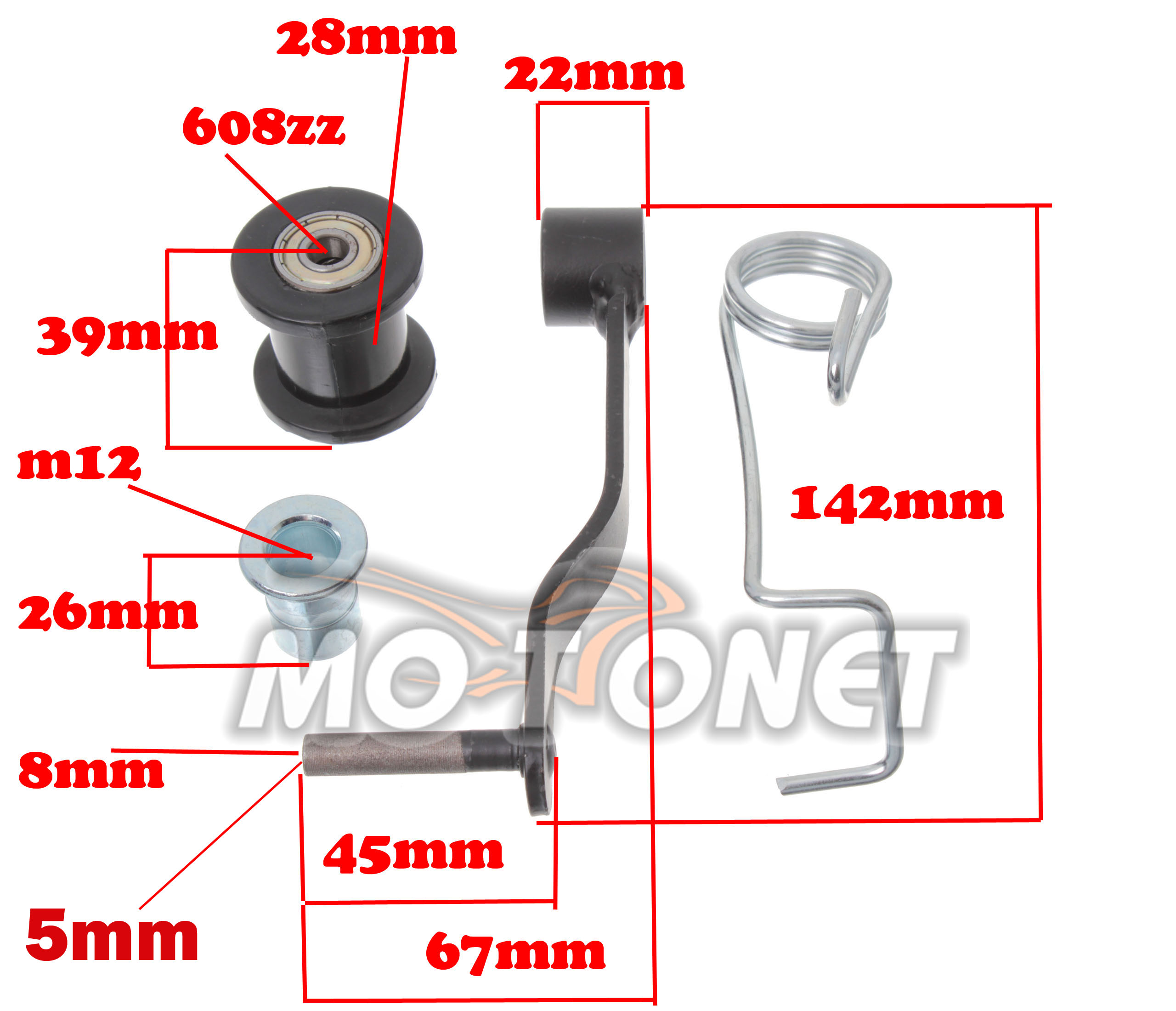 ОПИС: ВАЖІЛЬ НАТЯЖИВАЧА ЛАНЦЮГА (ПЛАГИЙ ВИГНУТИЙ) З ВТУЛКОЮ РОЛИКОВИЙ І ПРУЖИНОЮ ДЛЯ КВАДРОДИБОРА 250см3
