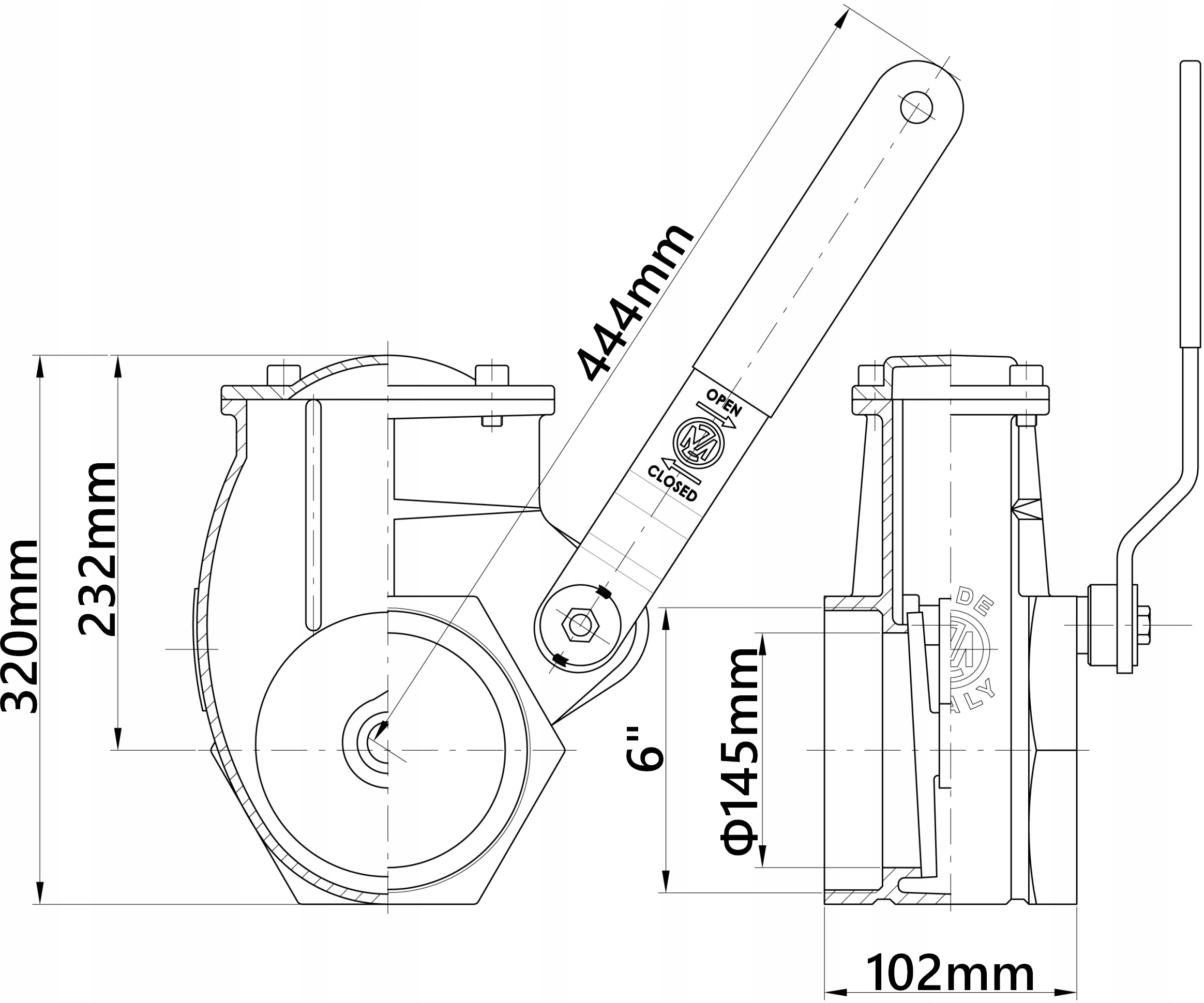 Засувка з латунним важелем MZ 6" Barrel Vacuum Wagon