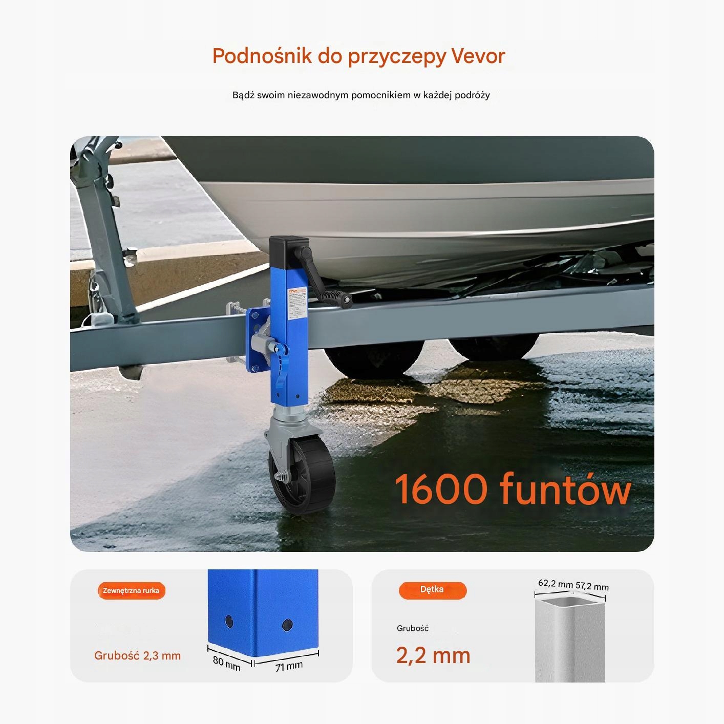 Ми представляємо підйомник причепа з вражаючою вантажопідйомністю 725 кг , ідеально підходить для різних застосувань, таких як кемпінг, коня або комунальні причепи. Оснащений пластиковим колесом PP , забезпечує гладкий і стабільний рух у будь -якому напрямку. Ергономічна ручка дозволяє легко підняти причіп без зусиль.