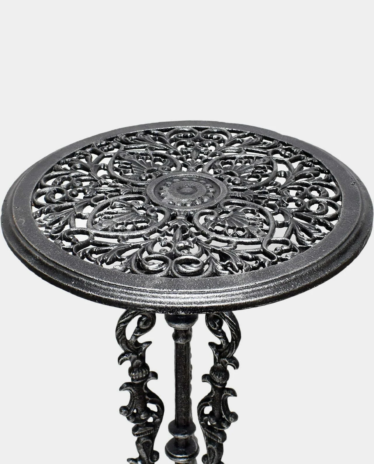 Багато декорований, «мереживний» садовий стіл. Виготовлений з чавуну з увагою до найдрібніших деталей. Його можна використовувати як журнальний столик у куточку відпочинку у вашому саду, а також як підставку для квітів, основу для горщиків із квітами чи іншими садовими рослинами, наприклад, для дерев бонсай чи лісу в банці. Ідеально підійде як в ресторані, так і в оранжереї.