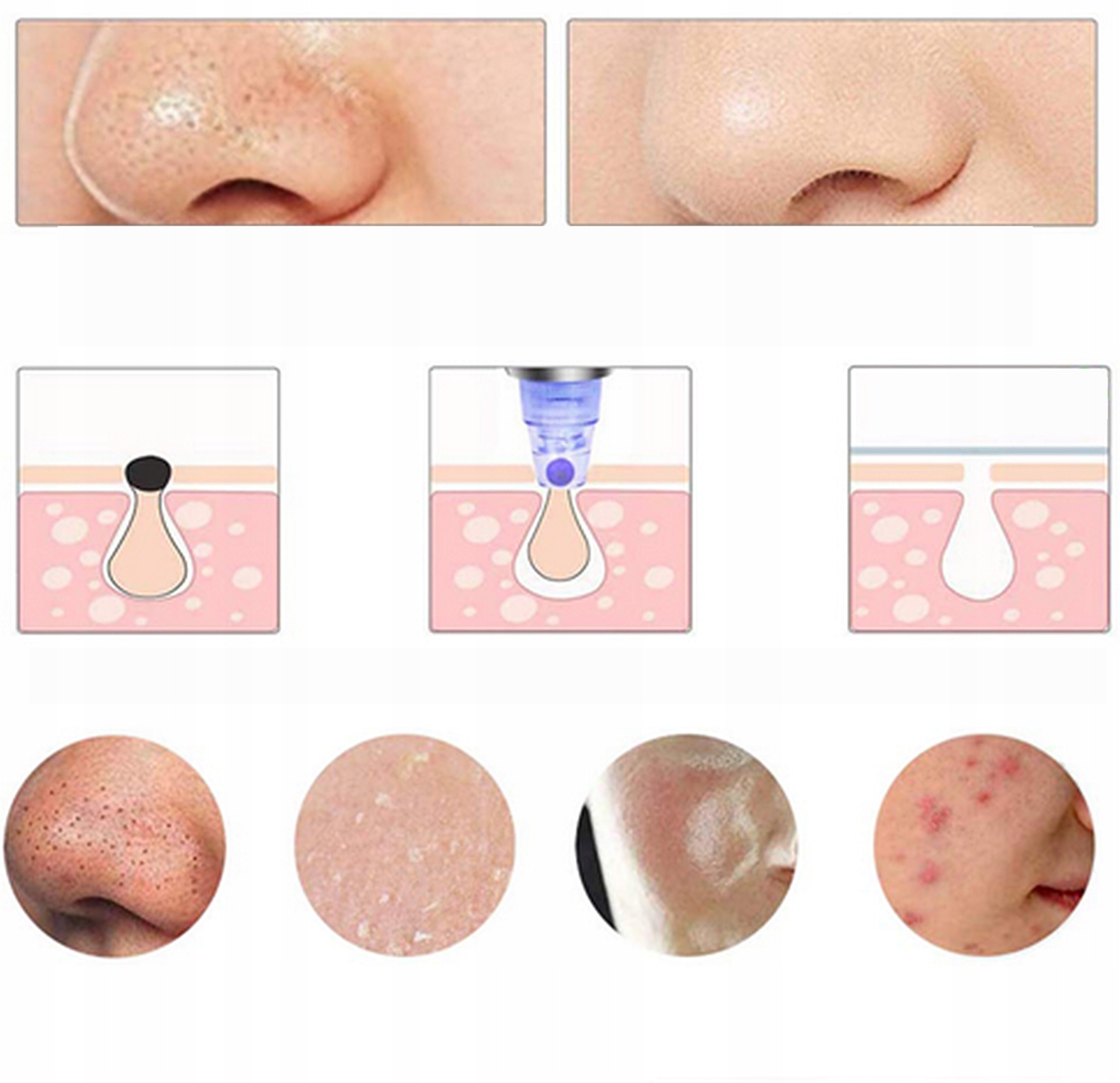 - Головка з великим отвором характеризується високою силою всмоктування. Усуває дрібні чорні точки, масажує шкіру за допомогою мікроліфтингу, стимулює мікроциркуляцію крові та лімфи.