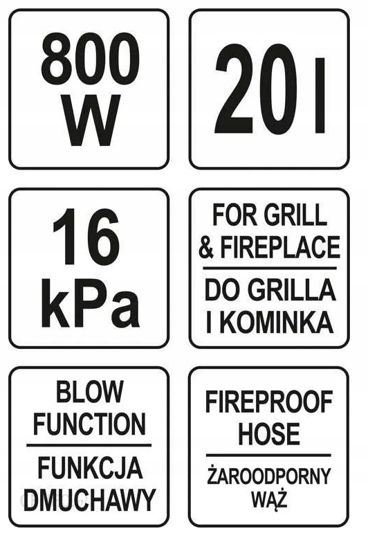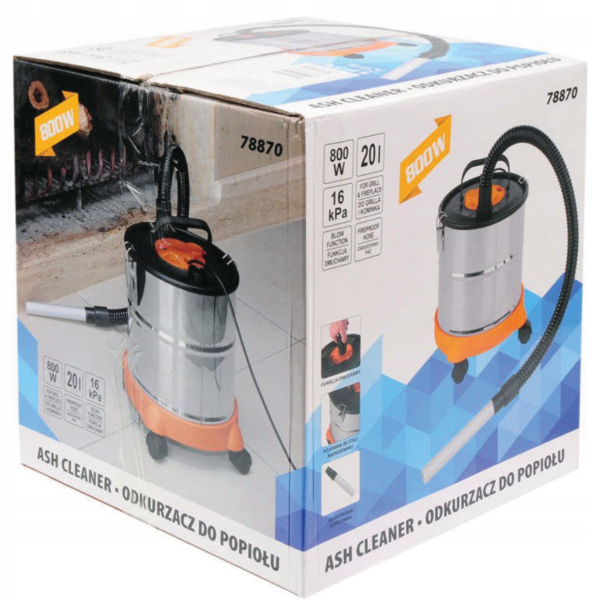 Пилосос для золи від камін або гриль, двигун 800 Вт (макс. 1000 Вт), вакуум: 16 кПа. - ємність з нержавіючої сталі 20 л, - підстава резервуара на колесах, - багатоступенева система фільтрації: фільтр Hepa та фільтр для матеріалів, - термостійкий всмоктувальний шланг довжиною приблизно 1 м з алюмінієвим наконечником 23 см, - функція обдування, - складна ручка для перенесення пристрою , - кабель живлення приблизно 1,8 м. Розміри фільтра: - висота: 9 см - ширина: 16 см (діаметр) - отвір: 11,5 см (діаметр).