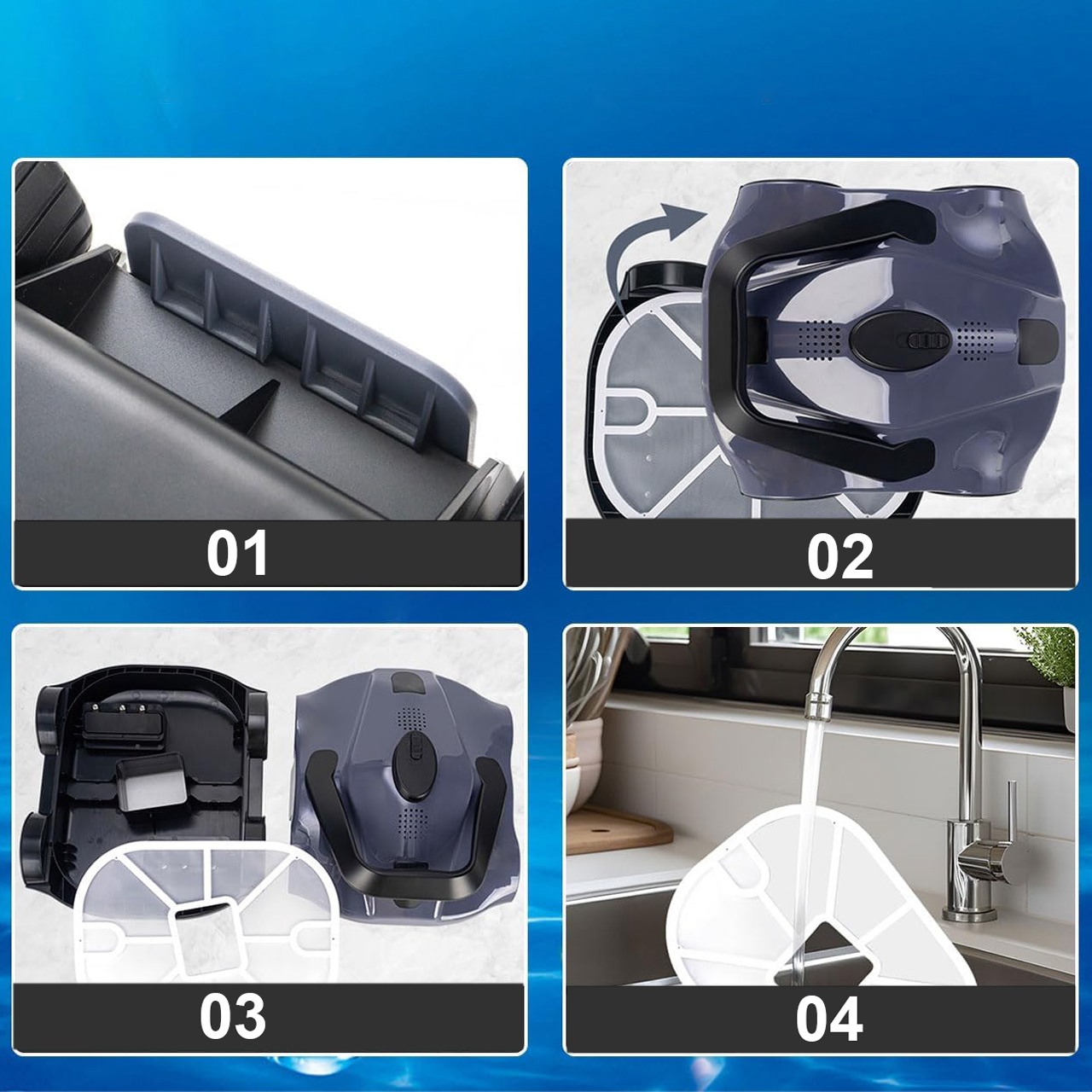 - Цей робот з очищення басейну легкий, і кожен може легко зняти його з води, просто виймаючи фільтраційний диск і промити його садовим шлангом.