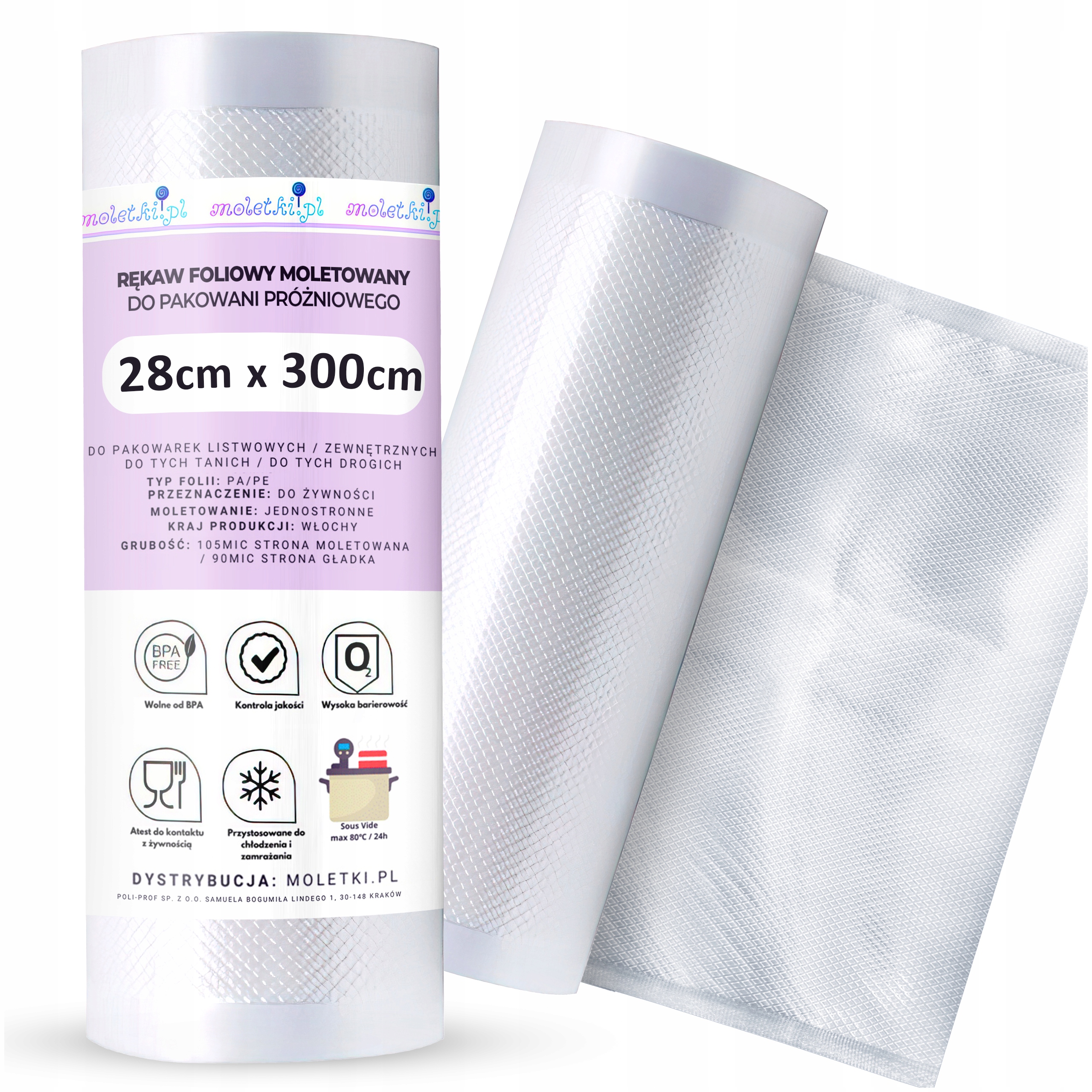 ВАКУУМНА ПАКУВАЛЬНА ФОЛЬГА РУЛОН ДЛЯ ЗАПАЮВАЛЬНОЇ МАШИНИ 28 см х 300 см 3 метри