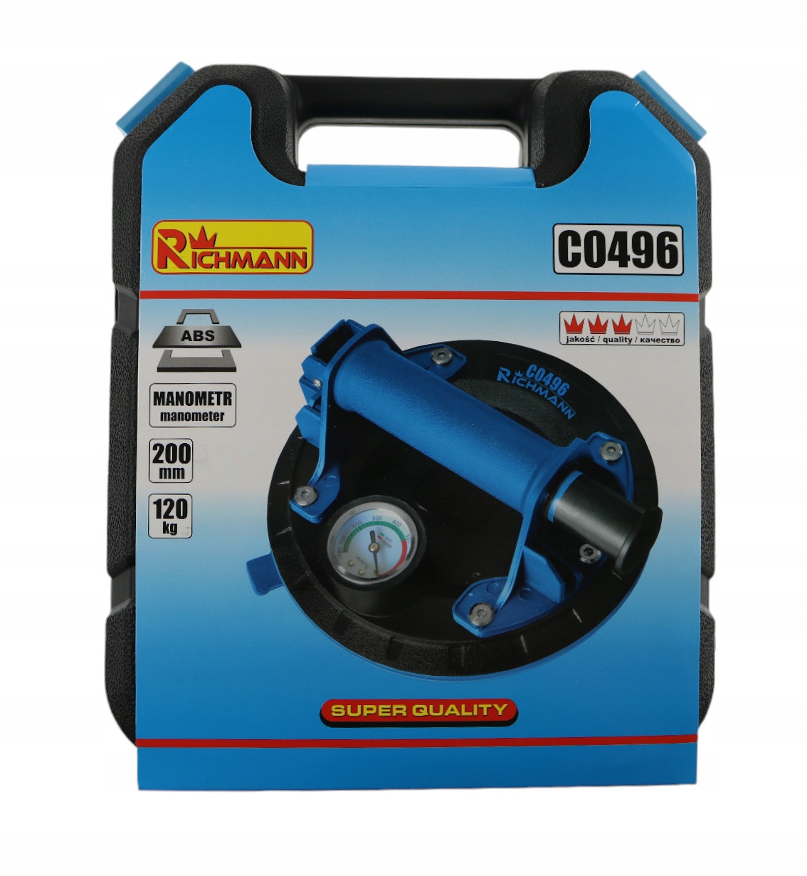 ВАКУУМНА ПРИСОСКА 200ММ ДЛЯ ВІКОН НАВАНТАЖЕННЯ 120КГ МАНОМЕТР RICHMANN C0496