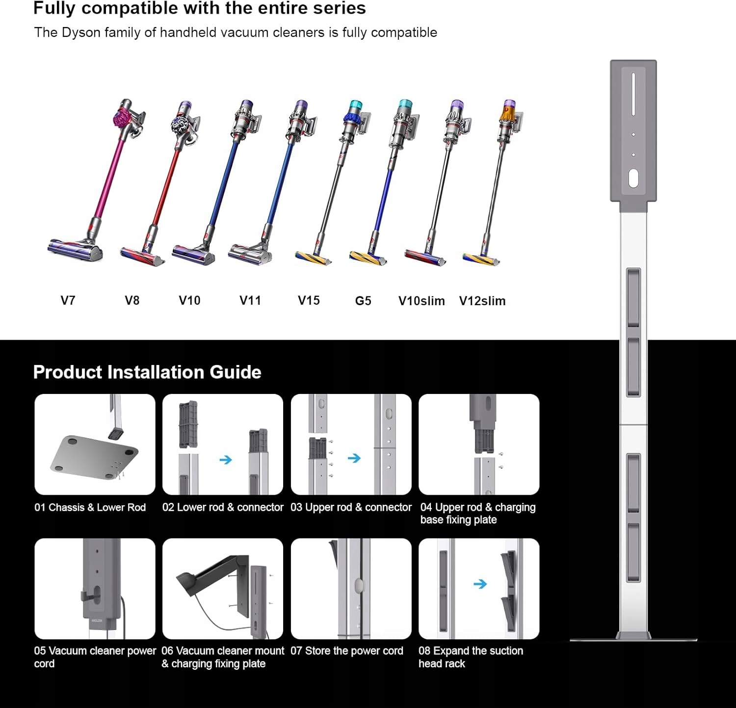 Ідеально підходить для пилососів Dyson: розроблено спеціально для пилососів і аксесуарів Dyson, забезпечуючи безпечне й акуратне рішення для зберігання інструментів Dyson. Інноваційний складаний дизайн: невидимі складні гачки, які можна сховати або розкласти, заощаджуючи простір і зберігаючи елегантний внутрішній вигляд. Міцна та довговічна конструкція. Посилена основа з вуглецевої сталі та стійка з високоміцного алюмінієвого сплаву забезпечують тривалу стабільність, утримуючи аксесуари Heavy Dyson без перекидання. Встановлення без пошкоджень: легко зберігайте пилосос і супутні аксесуари без необхідності свердлити отвори в стіні! Захистіть поверхню стіни від будь-яких структурних пошкоджень. Рішення для організованого зберігання: двошарова пластина для заряджання/кріплення з пластику ABS і органайзери для шнурів дозволяють акуратно зберігати аксесуари для пилососа Dyson, усуваючи безлад у вітальнях, кухнях або їдальнях. Протиковзкий і безпечний: включає 4 нековзкі килимки EVA та текстуровану поверхню, щоб ручка залишалася на місці навіть під час частого використання.