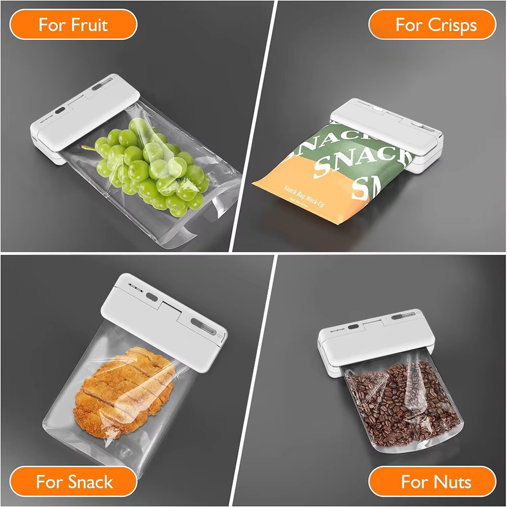 - Підтримка свіжості їжі: Зварювальна машина ефективно ущільнює мішки, що допомагає зберігати чіпси, фрукти, овочі та інші закуски на свіжість довше. Зарядка може працювати до 30 разів. Заощадження на заміну акумулятора! 4
