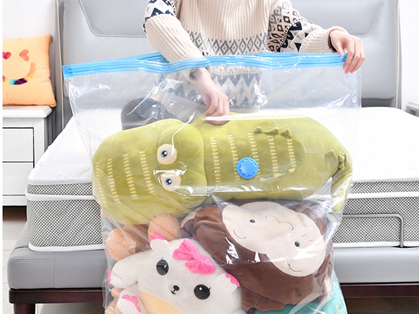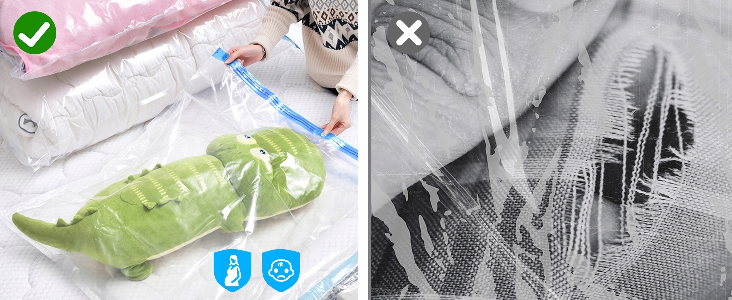 Наші вакуумні органайзери виготовлені з багатошарової плівки PA-PE, яка є міцнішою, довговічнішою та стійкішою до розривів і стирання, ніж нейлон і поліетилен. Оснащені подвійними блискавками та потрійними турбоклапанами для забезпечення герметичності для тривалого захисту одягу та багаторазового використання, вони є економічно ефективним та екологічним рішенням для зберігання!