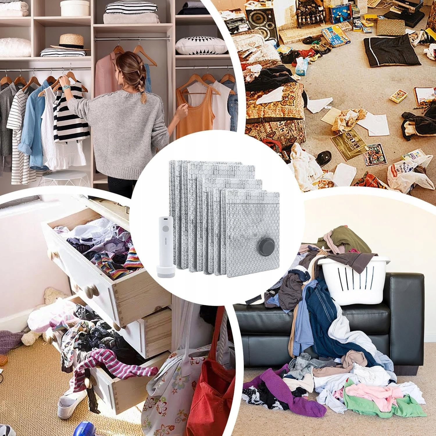 ВАКУУМНІ МІШКИ ДЛЯ ОДЯГУ 3 РОЗМІРИ МІЦНИЙ БАГАТОРАЗОВИЙ НАСОС X12