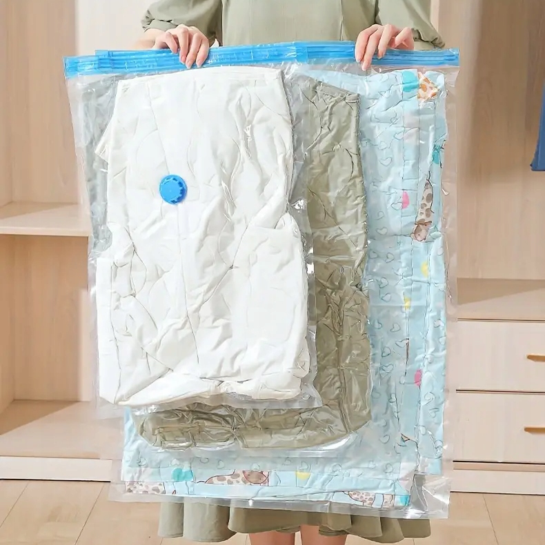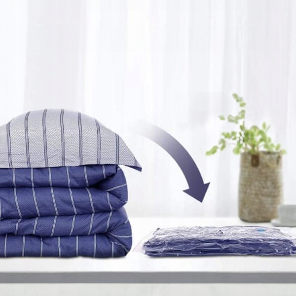 Вакуумні пакети – практичне та просте рішення, яке дозволить герметично упакувати одяг та стиснути їх об'єм до 70%, видаливши з них зайве повітря за допомогою пилососа.