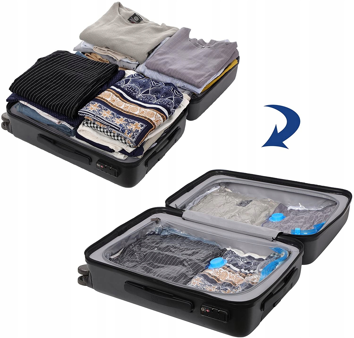 Ціла купа одягу зменшується в чотири рази, якщо її помістити у вакуумну упаковку! Замість переповнених шаф і полиць ви отримуєте порядок і багато місця! Одяг, який зберігається без доступу повітря, довше виглядає новим! Просто використовуйте звичайний пилосос.