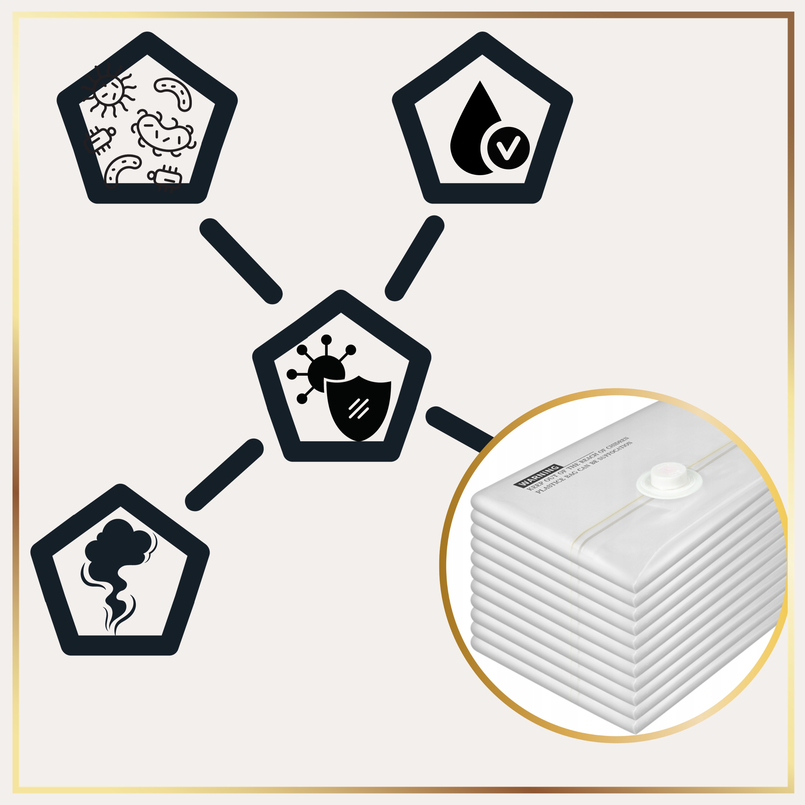 ⛔️ Не зберігайте в них натуральну шкіру або постільну білизну з натурального пуху та пір’я.