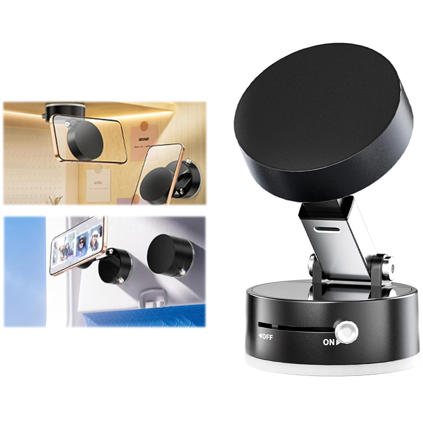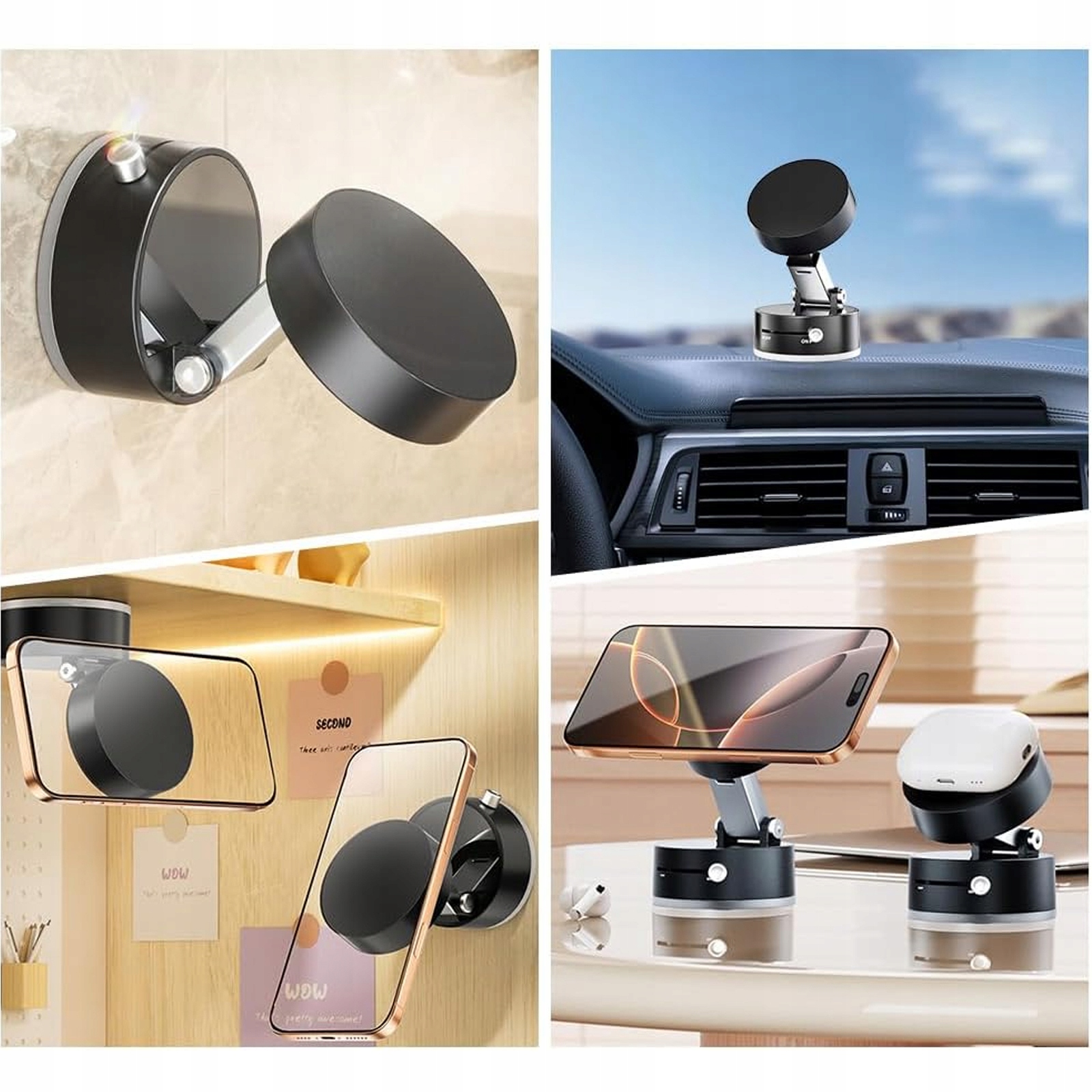 ВАКУУМНИЙ МАГНІТНИЙ АВТОТРИМАЧ ДЛЯ ТЕЛЕФОНУ, СКЛАДНИЙ І ПОРТАТИВНИЙ, ЧОРНИЙ
