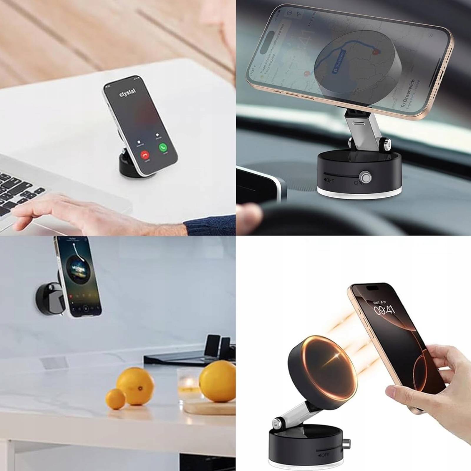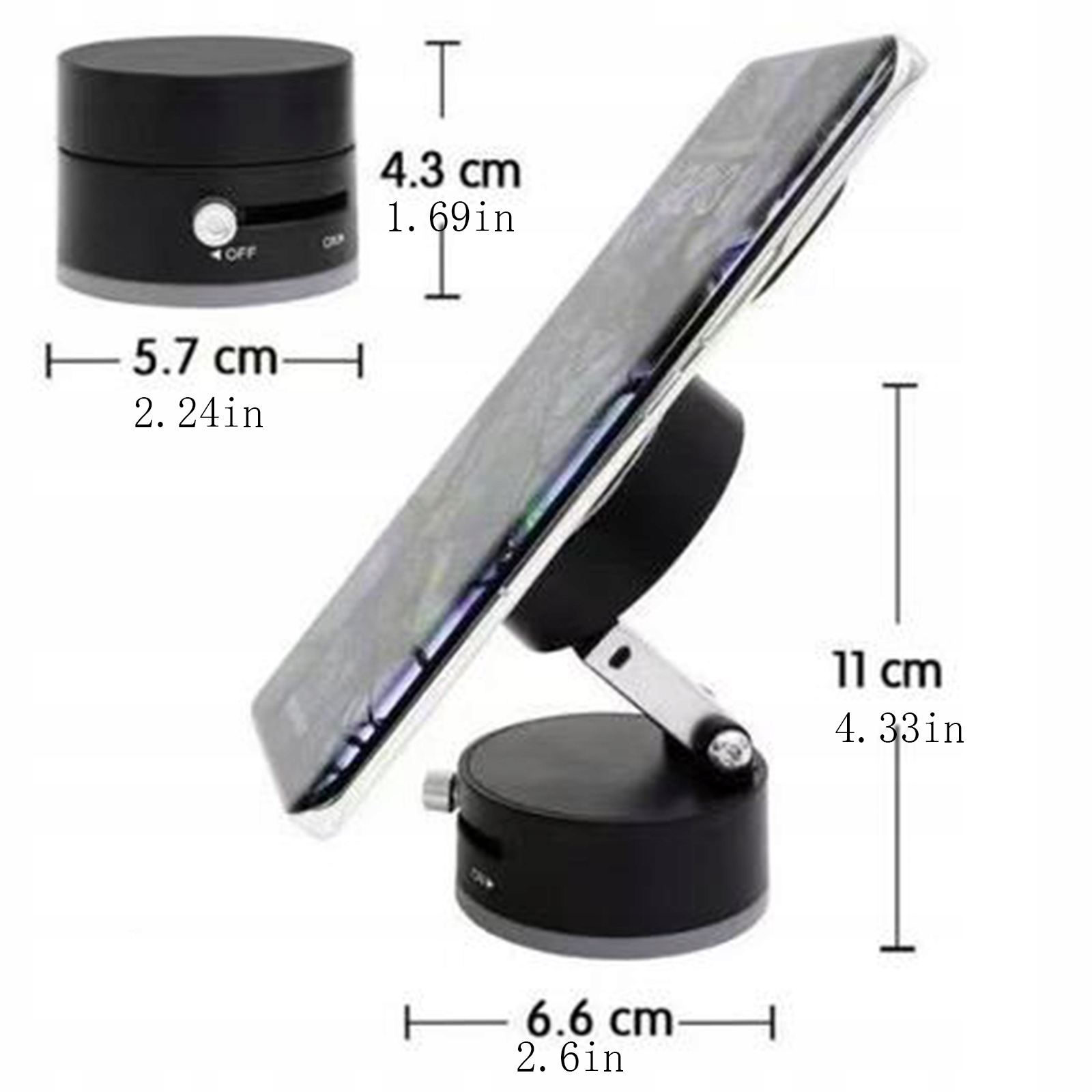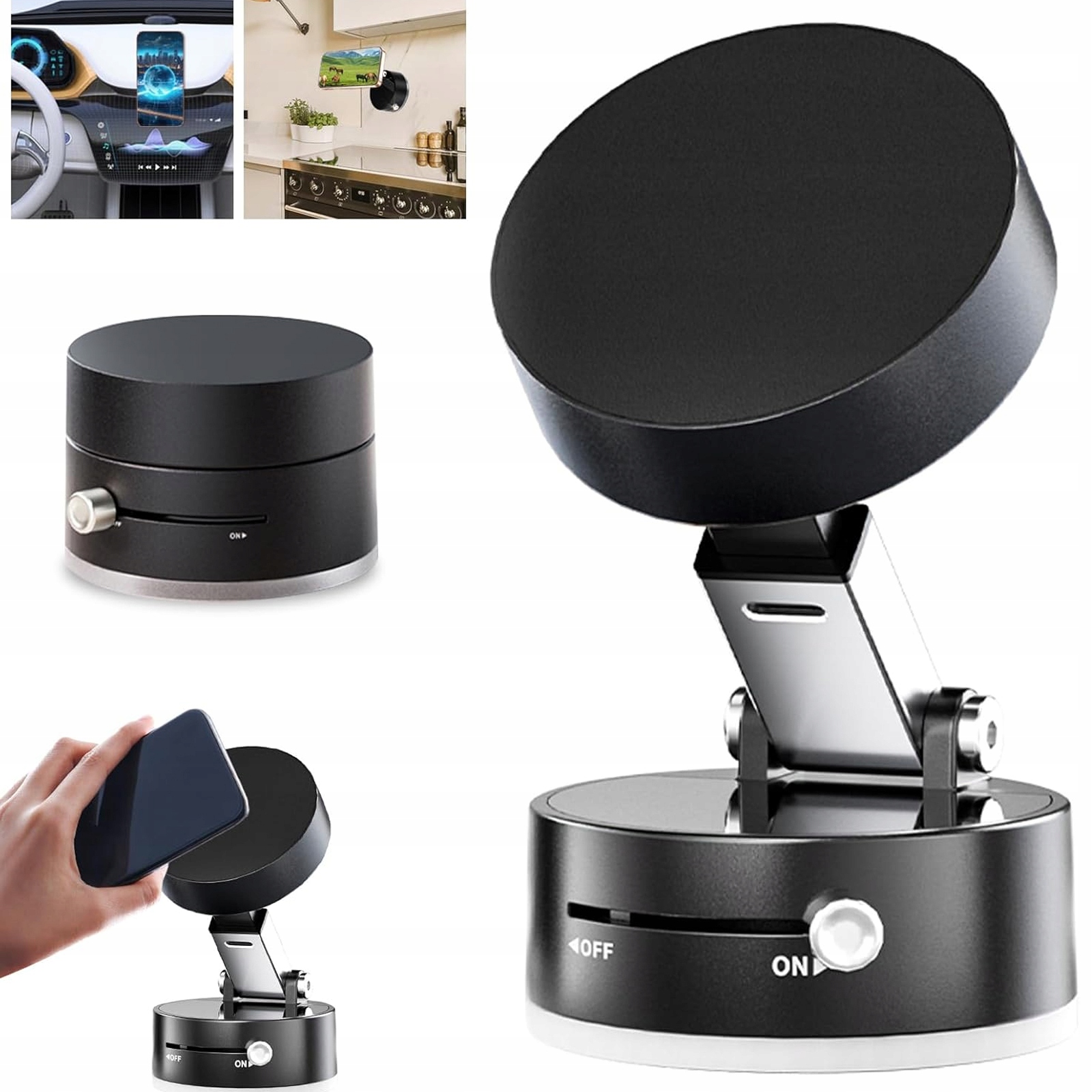 МАГНІТНИЙ АВТОМОБІЛЬНИЙ ТРИМАЧ ДЛЯ ТЕЛЕФОНУ ВАКУУМНИЙ СКЛАДНИЙ І ПОРТАТИВНИЙ ЧОРНИЙ