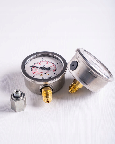 Гліцериновий вакуумний манометр 63 мм з нижнім підключенням G 1/4". Корпус з нержавіючої сталі.