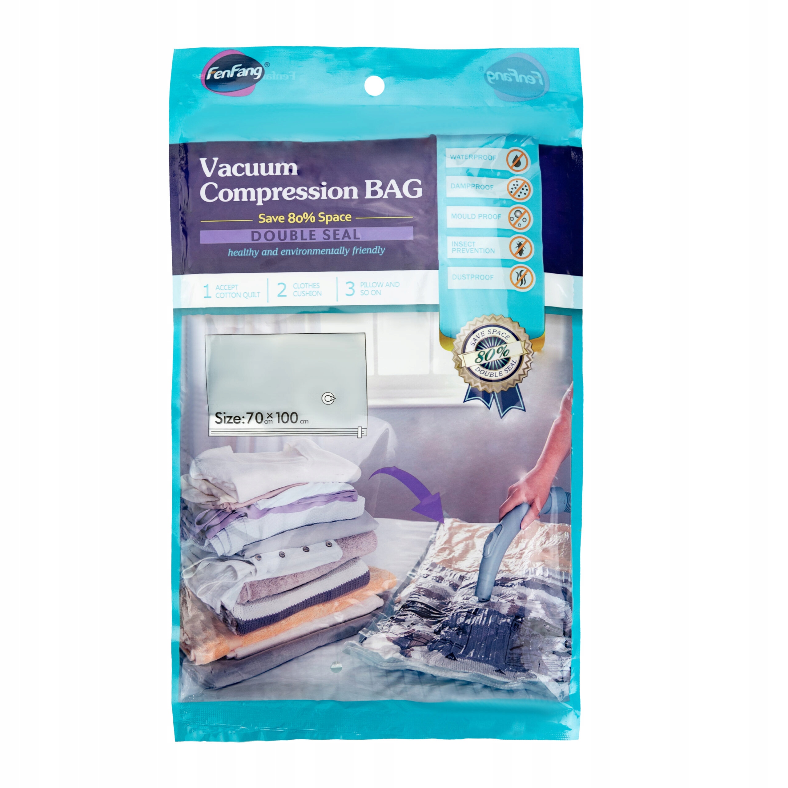 Його головна перевага — здатність видаляти повітря з інтер’єру, що дозволяє зменшити об’єм речей, що зберігаються до 75%.