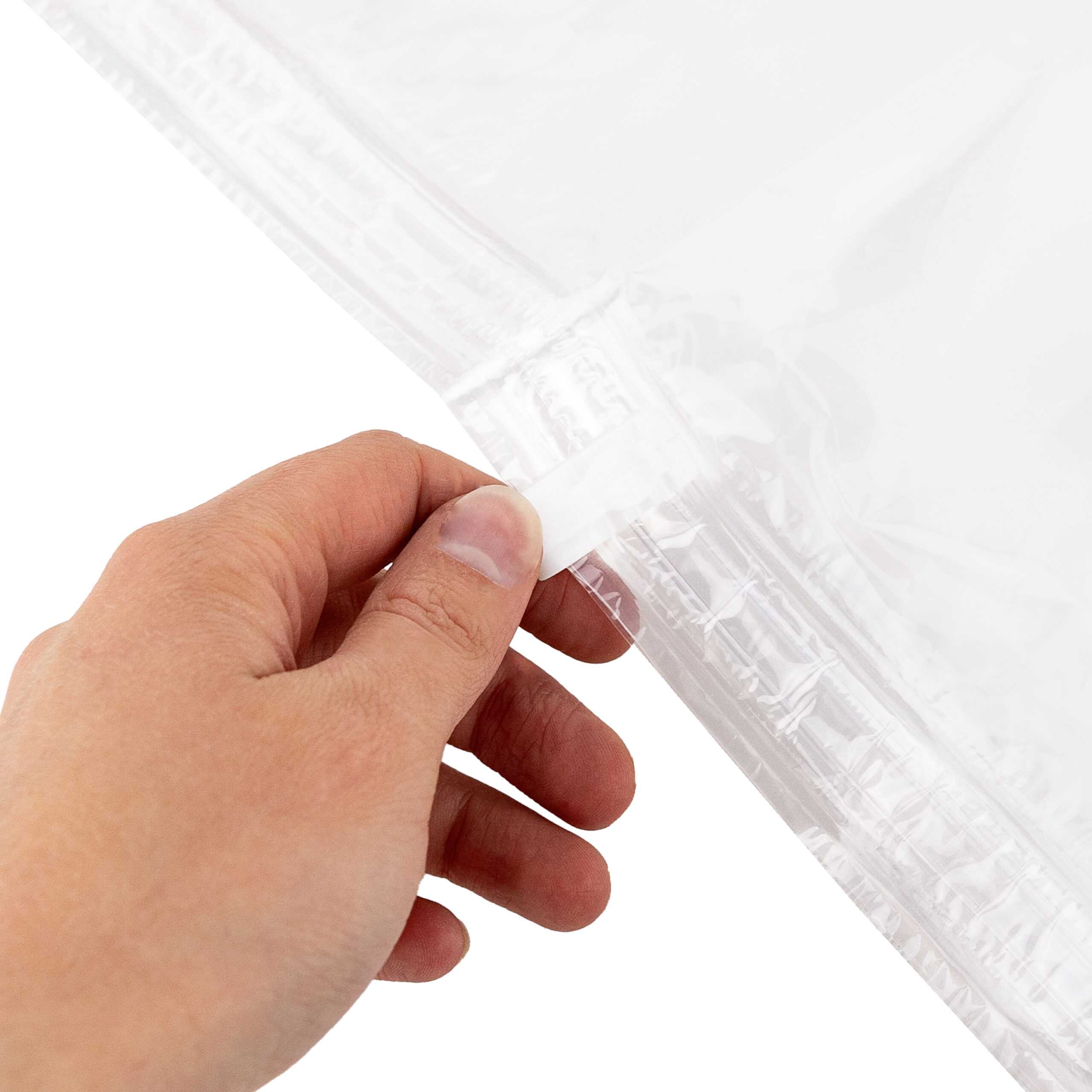 Сумка виготовлена з міцного матеріалу (PTE, PE), стійкого до стирання та пошкоджень, що забезпечує тривалий захист вашого одягу. Крім того, його прозорий дизайн дозволяє легко ідентифікувати вміст, не відкриваючи сумку, полегшуючи керування гардеробом і швидкий пошук потрібних речей.