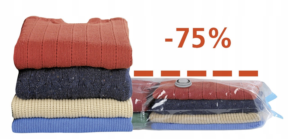 Ідеальним рішенням буде купівля вакуумних мішків. Сумки чудово підходять для зберігання різних продуктів у шафі та є неоціненною допомогою для переїзду та подорожей. Завдяки їм ви не лише економите місце, але й захищаєте одяг та постільну білизну від вологи, пилу та молей. Речі, які будуть зберігатись у мішку, відновлять свою форму після видалення з упаковки.