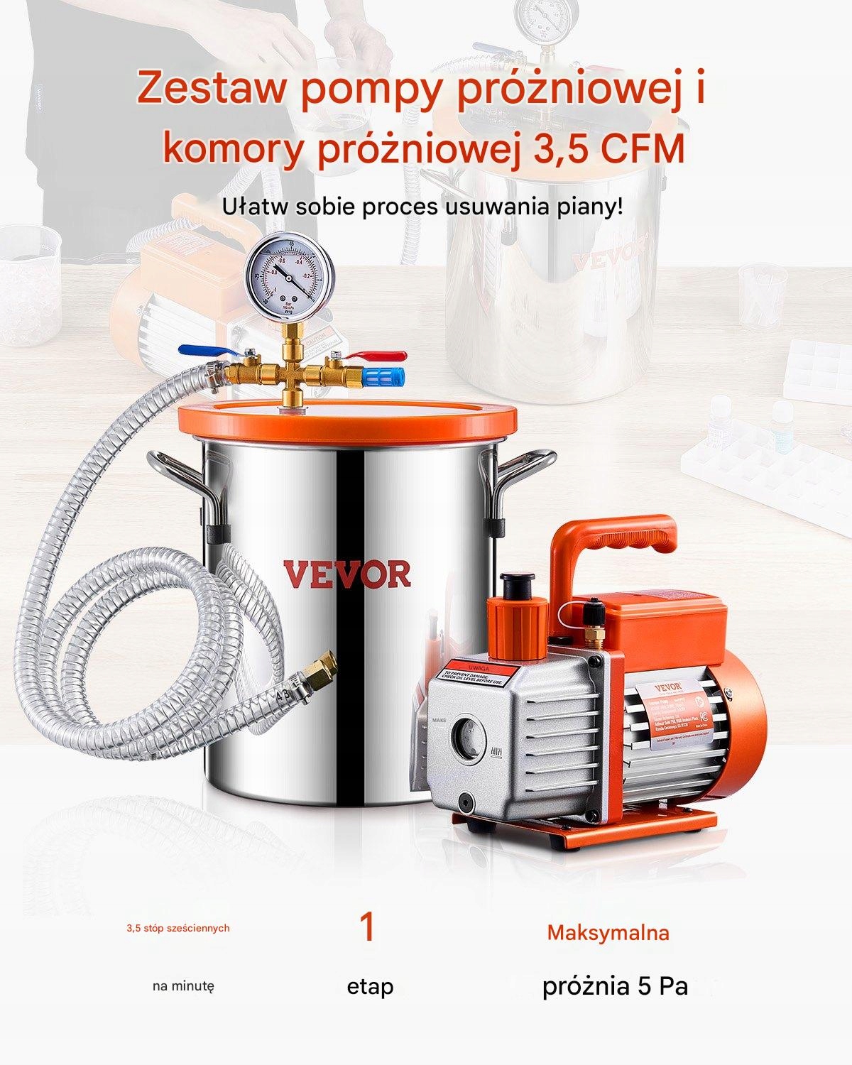 Ви шукаєте ефективне рішення для дегазації смоли, вакуумного пакування чи лабораторної роботи? Комплектація з вакуумним насосом 3,5 CFM і камерою 3 галони - гарантія ефективності та комфорту роботи. Нержавіюча сталь, мідний двигун, прозора кришка та кінцевий вакуум 5 Па – це якість, на яку ви можете розраховувати.