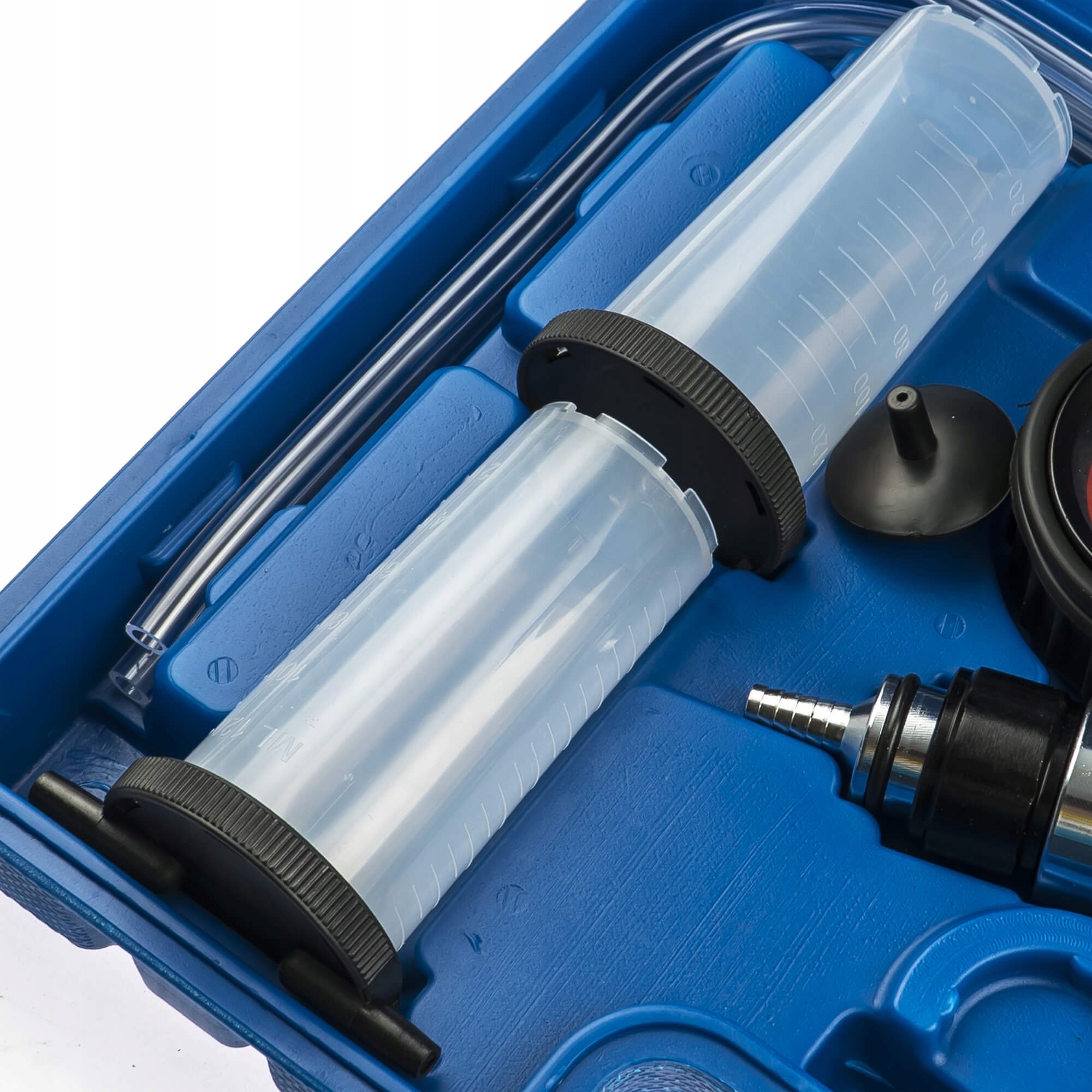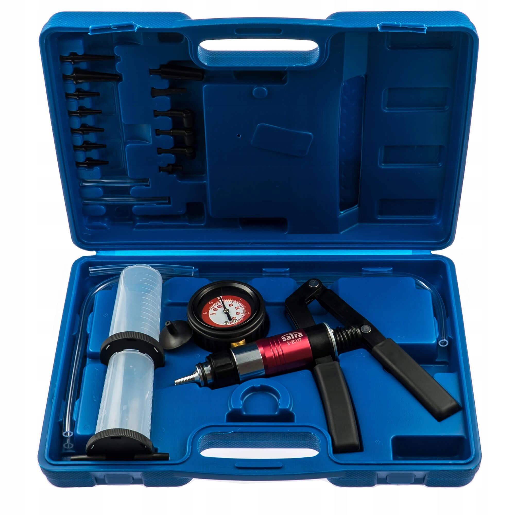 Набір для прокачування та заміни гальмівної рідини, а також для перевірки, серед іншого, герметичність регулюючих клапанів повітрозабірника, модулятора тиску, регуляторів випередження вакууму, клапанів підсилювача гальм в коробках передач, карбюраторах.