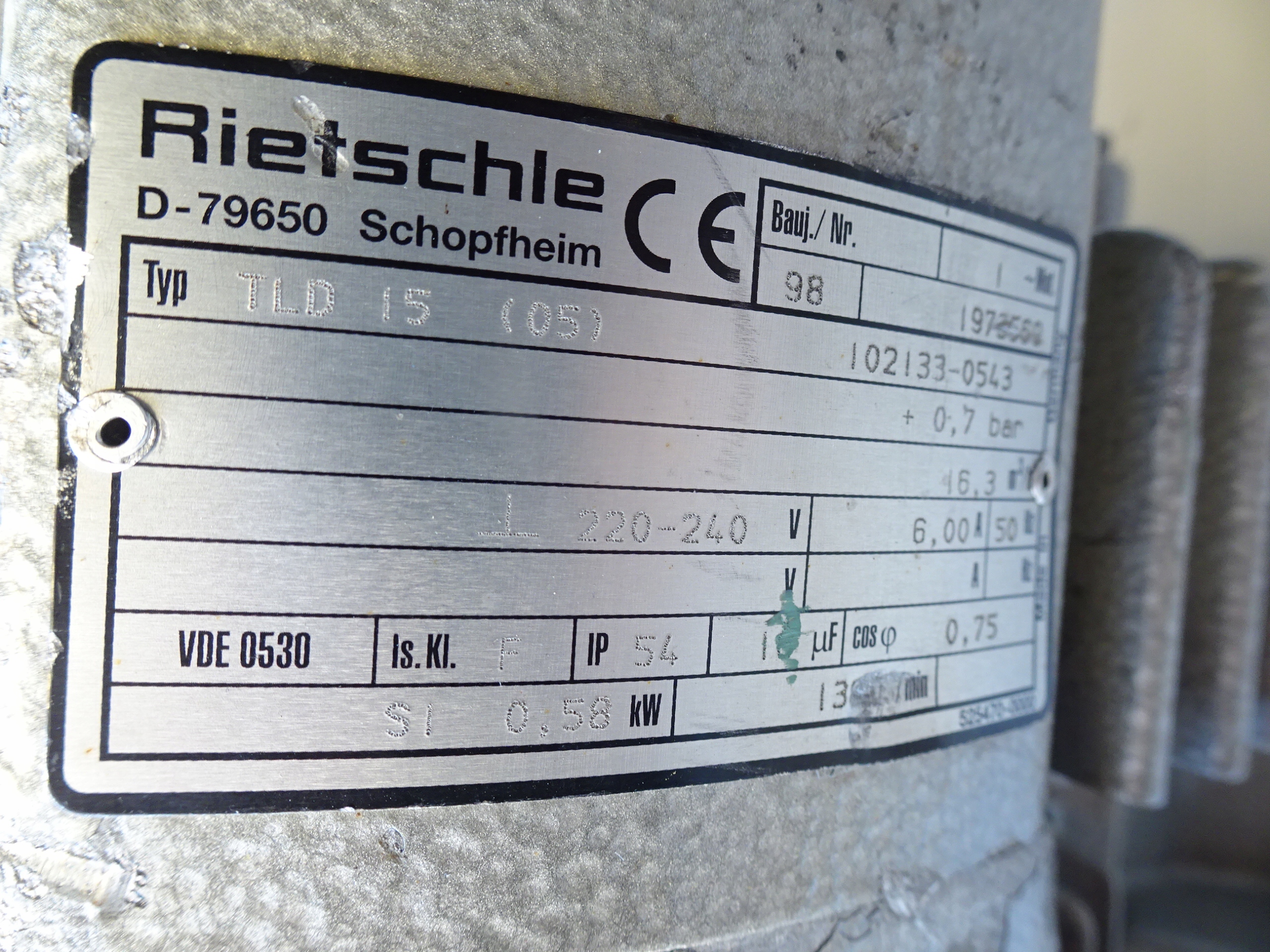 ВАКУУМНИЙ НАСОС RIETSCHLE TLD 15 0.55KW 16.3M3 /H 230V ДЛЯ РЕГЕНЕРАЦІЇ