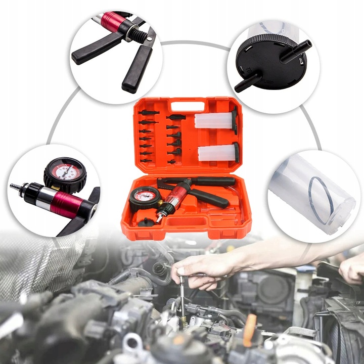Вакуумний насос -це багатофункціональний пристрій для діагностики систем у автомобілях та технологіях, експлуатація яких базується на тиску або вакуумі. Він оснащений аксесуарами, що дозволяє використовувати майже в кожному двигуні чи системі.