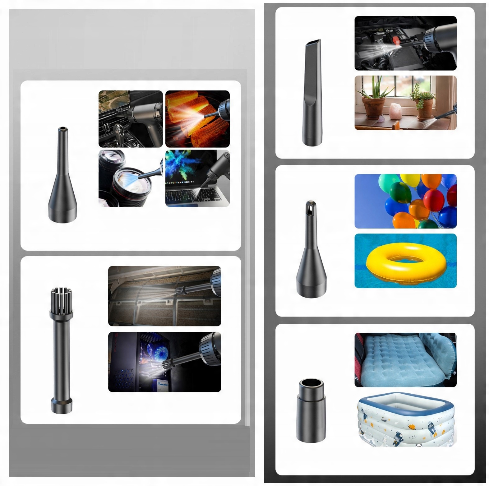 Багато різних варіантів форсунок: Завдяки 5 різним насадкам пилосос може бути адаптований до різних потреб у чистці.