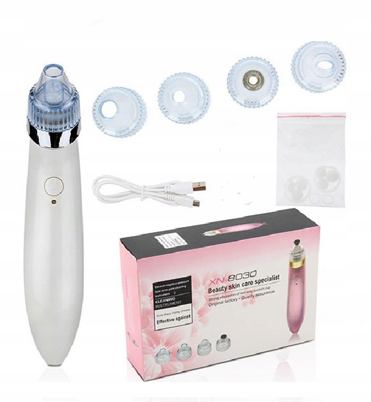 Пилосос для чорних крапок - це найпопулярніший прилад для видалення чорних крапок, чорних крапок та інших недоліків з регульованою 2-рівневою потужністю. Завдяки сучасному дизайну він ідеально лежить у руці, забезпечуючи комфорт і зручність використання. Компактні розміри дозволяють брати його з собою всюди. Професійний прилад, за допомогою якого ви можете проводити процедуру, не виходячи з дому.