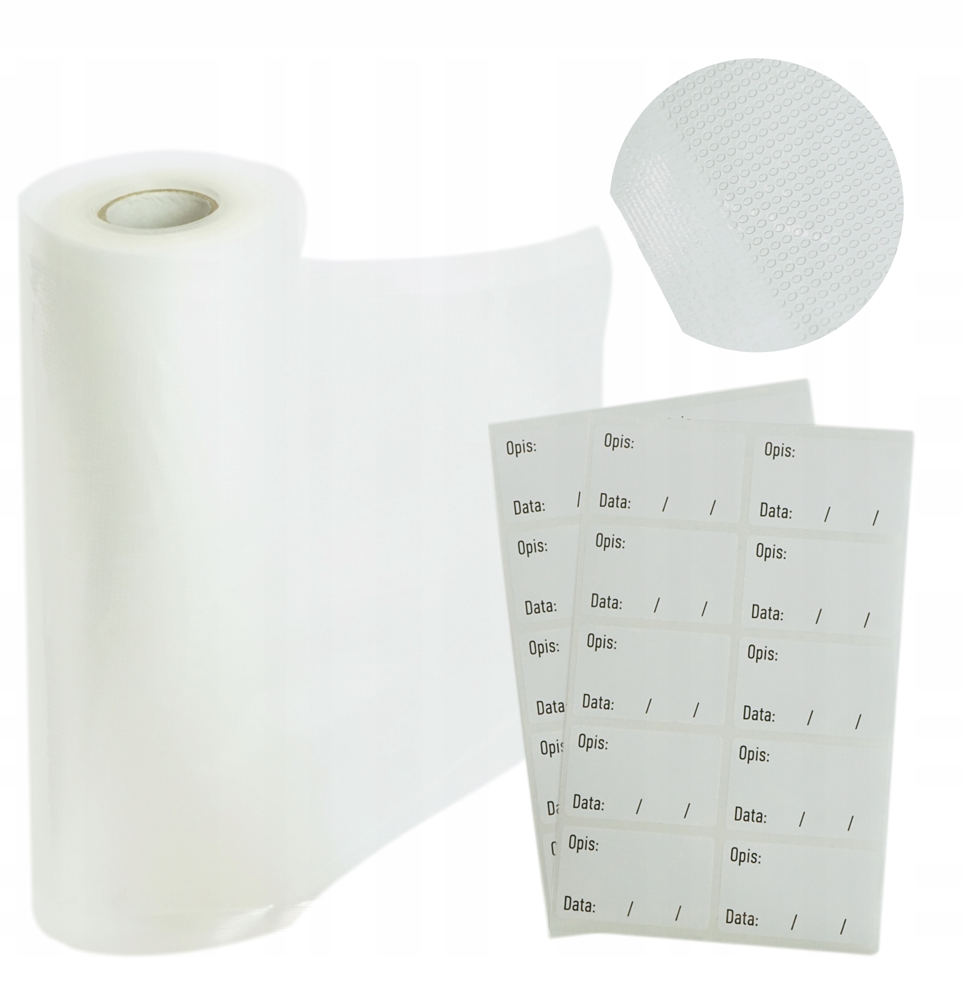 ПЛІВКА ВАКУУМНА ПАКУВАЛЬНА УНІВЕРСАЛЬНА РУКАВ 28 см х 6 м + 20 ЕТИКЕТОК