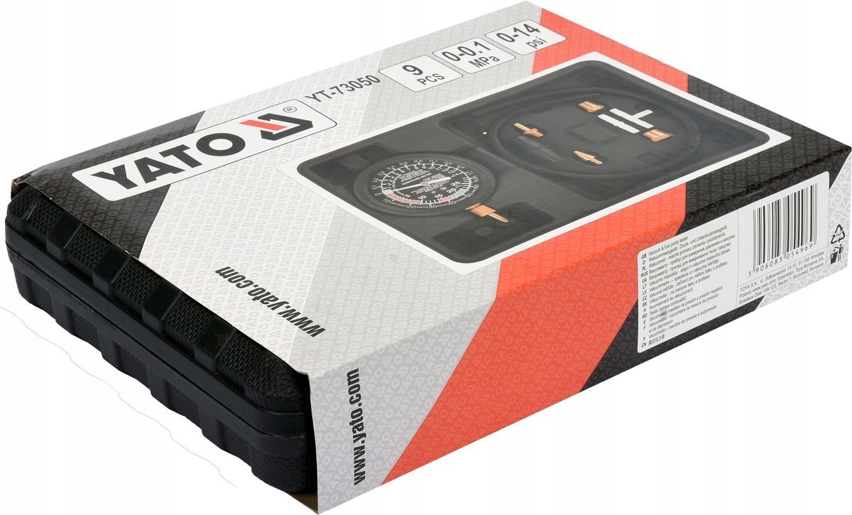 Набір із 9 предметів призначений для вимірювання тиску у вакуумних системах, карбюраторах, впускних колекторах і сервоприводах. Також використовується для перевірки гальмівних систем, електромагнітних клапанів, електровакуумних клапанів, форсунок, електричних і механічних паливних насосів і діагностики клапанів.