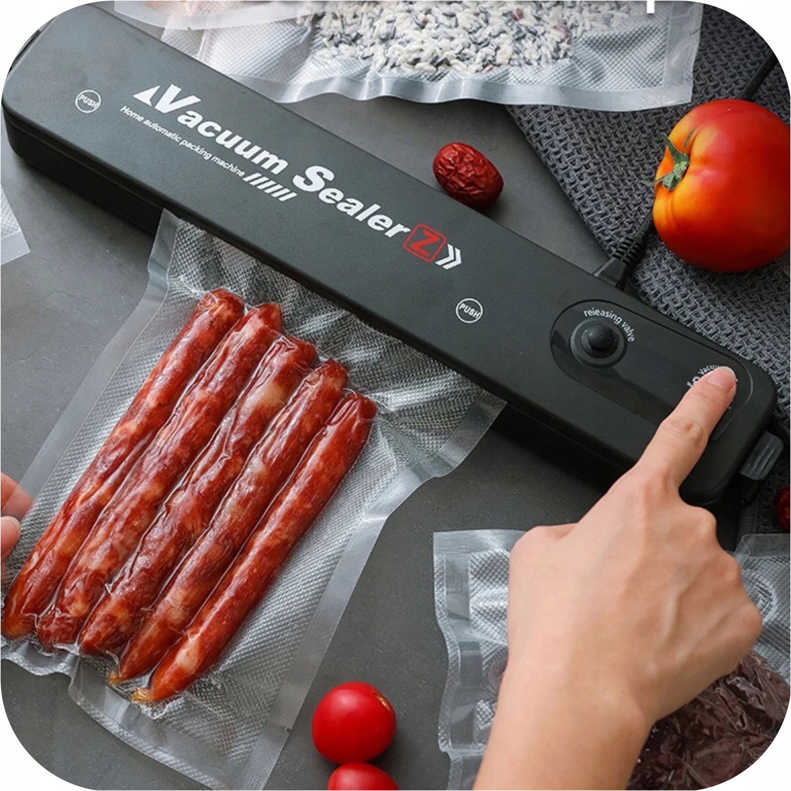 Його основною функцією є всмоктування повітря всередину пакета з фольги та таким чином запечатування харчових продуктів у вакуумі.