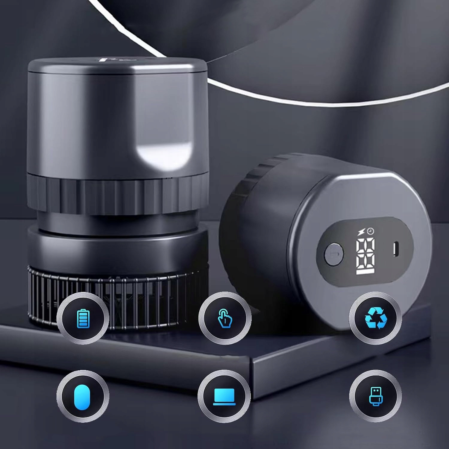 - На відміну від традиційних вакуумних насосів із лініями та шлангами, цей компактний, герметичний акумуляторний контейнер є бездротовим і портативним, що робить його ідеальним супутником для подорожей, кемпінгу та пікніків.