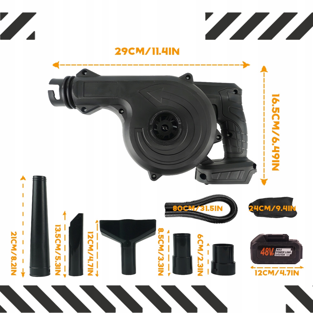 Цей бездротовий повітродувка використовує технологію турбокомпресора, яка забезпечує сильну продуктивність вітру. Він має побудований безщасливий двигун, який генерує менше тепла, має довший термін експлуатації і видає менше шуму, ніж звичайні двигуни пензля, забезпечуючи комфортне використання та надійну продуктивність.