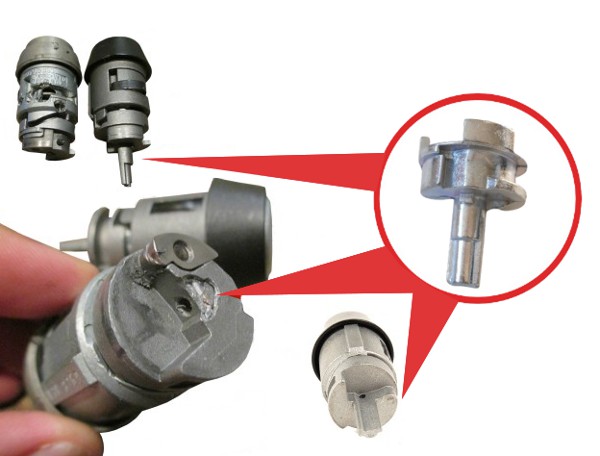 Поширеною причиною є зламаний контактний вал запалювання (як на фото нижче)