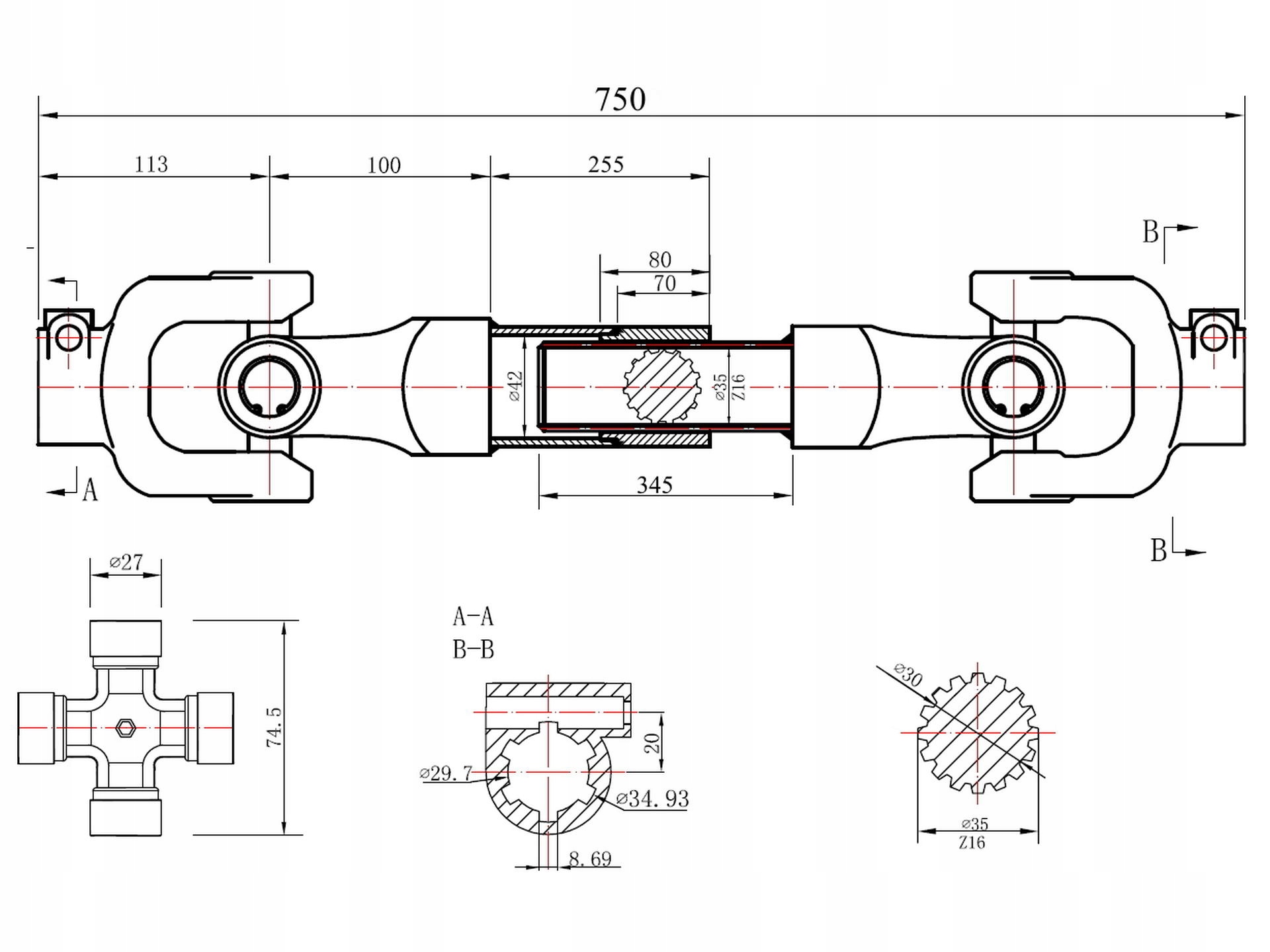 - Довжина нерозгорнутого валу: 750 мм