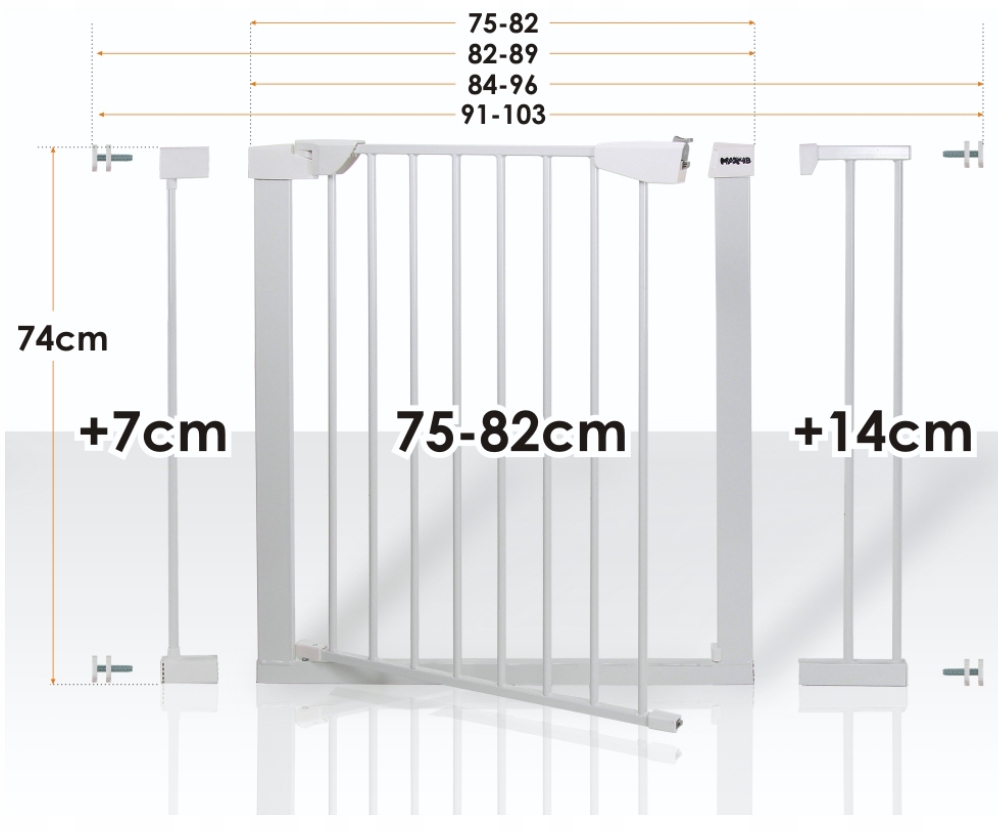 Завдяки опції розширення та системі кріплення ворота можна адаптувати до проходів з розмірами від 75 см до 82 см.