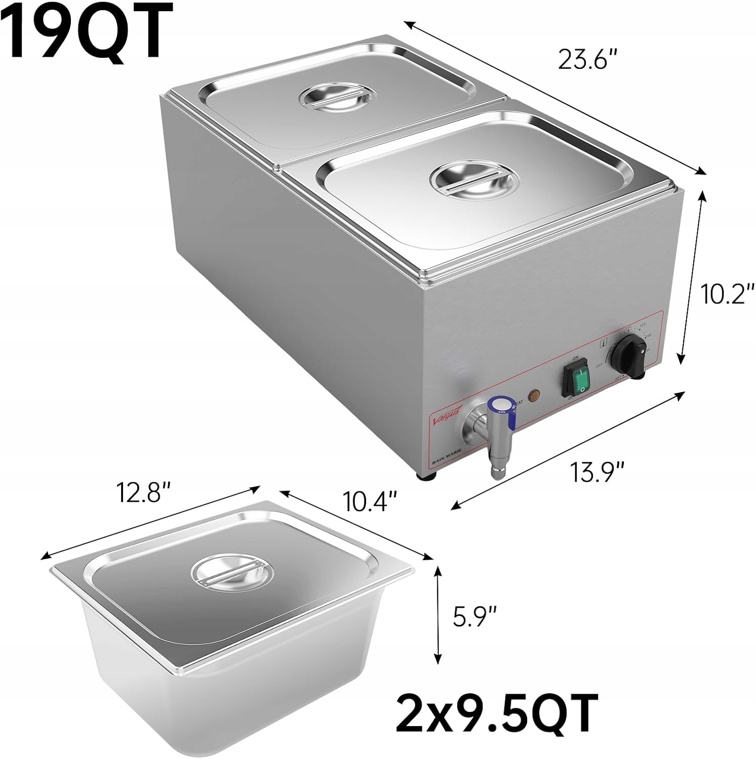 Вальгус Бейн Марі Нагрівач для посуду з нержавіючої сталі, 2 секції, 20 л, професійний паровий стіл з нержавіючої сталі з кришкою та краном, будинком та рестораном 1>