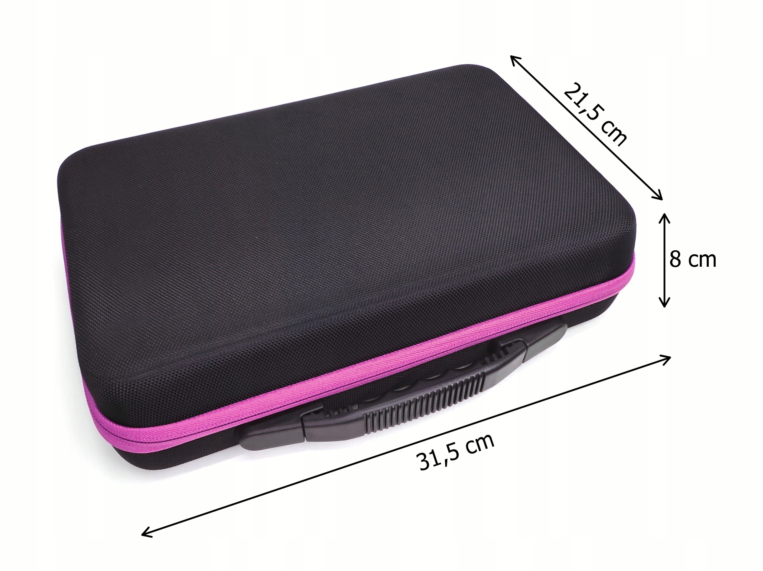 Валіза, органайзер на 60 лаків для нігтів - чорний з рожевою блискавкою