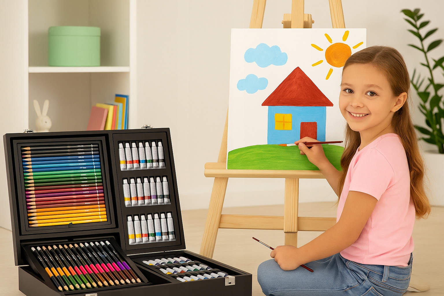 ✨ Повний набір із 174 елементів - фарби, кольорові олівці, пастель, фломастери та повний набір аксесуарів.