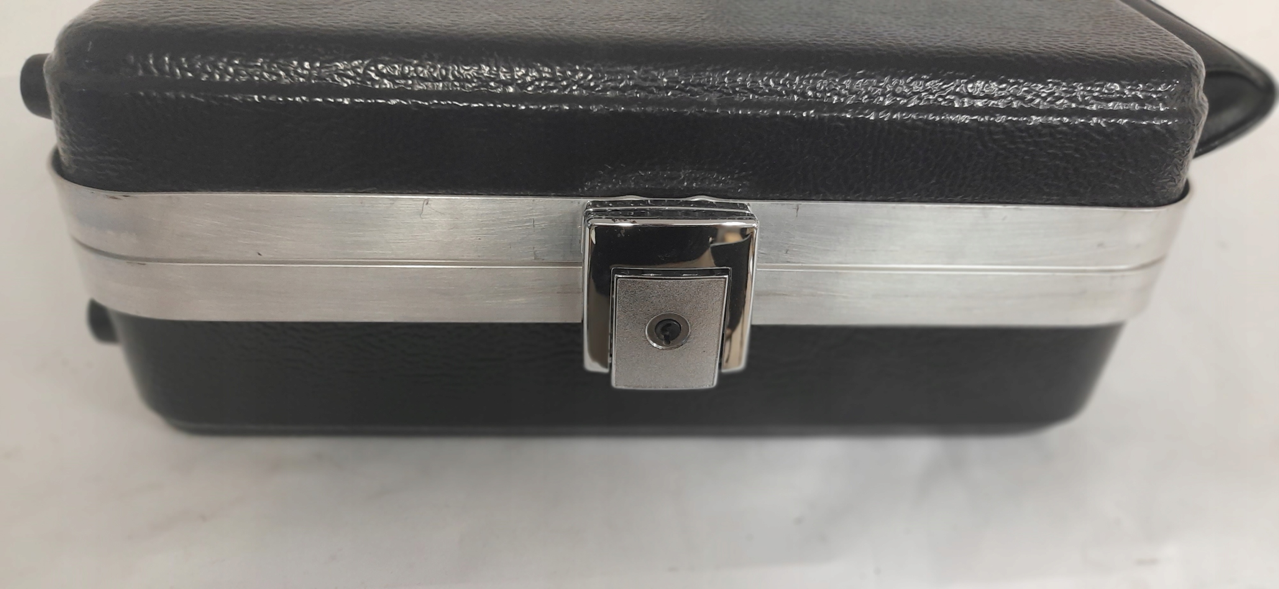 для продажу зручна та міцна валіза, ідеально підходить для зберігання та безпечного транспортування цінного обладнання, інструментів, фотографічних аксесуарів або документів. Його тверда, чорна конструкція з металевим арматурою кутів та країв забезпечує ефективний захист вмісту.