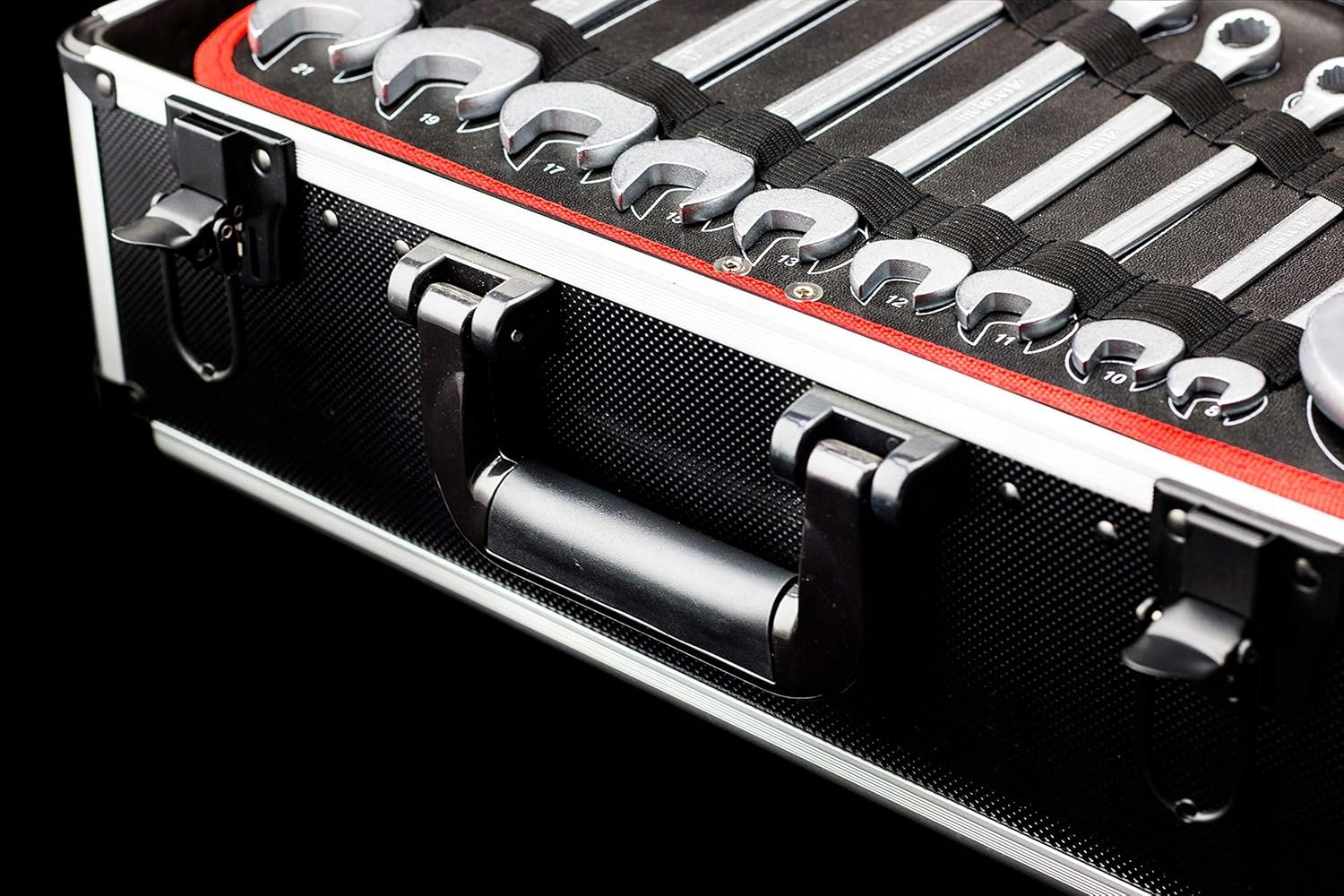 - Практична валіза: валіза, виготовлена з алюмінію з закругленими краями та кутовим захистом | Зручна носіння ручки для легкого транспорту Інтегрована проміжна вставка для компактного зберігання інструментів