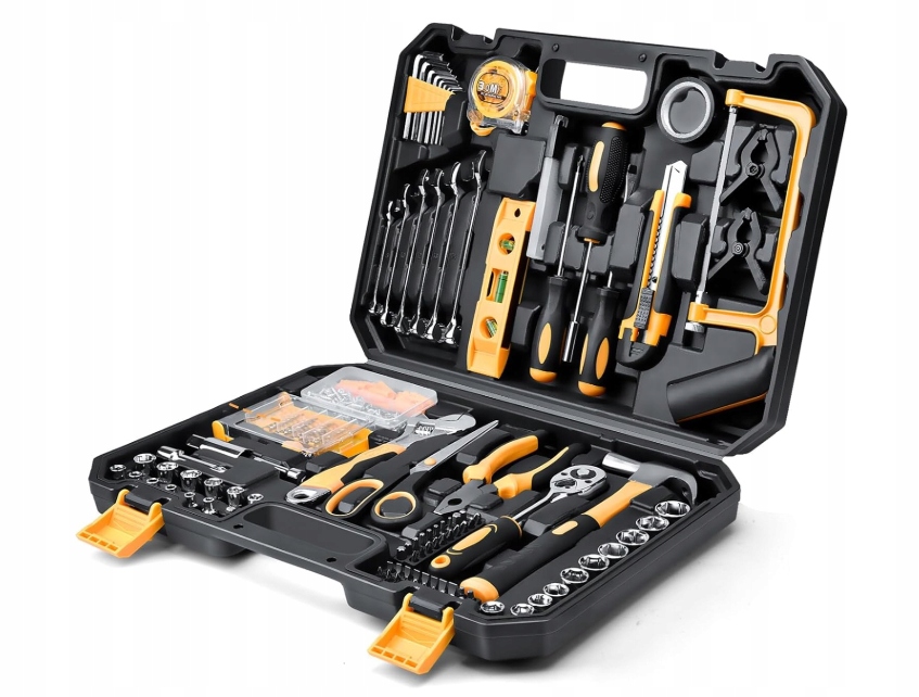 Ця валіза для інструментів Sundpey 225 частин містить кілька плоскогубців (різання плоскогубців, плоскогубці для видалення ізоляції, плоскогубці для водяних насосів), клавіш (шестикутній ключ, плоский ключ, клавіша розетки), викрутка, рівень металу, пилки, молоток, молоток та багато інших. Немає ручки на викрутці, плоскогубці, ножиці та молотках забезпечують відмінний комфорт та контроль. Цей набір точних викруток містить 30 біт і пінцетів. Біт викрутки магнітний, тому ви можете легко поставити мініатюрні гвинти в отвори. Підходить для демонтажу та обслуговування різних ремонтів ноутбуків, планшетів, годин, окулярів, цифрової камери, PS4, Nintendo тощо. Розміри коробки інструментів - 43 х 9,5 х 31 см і вага: 4,72 кг, легко переносити.