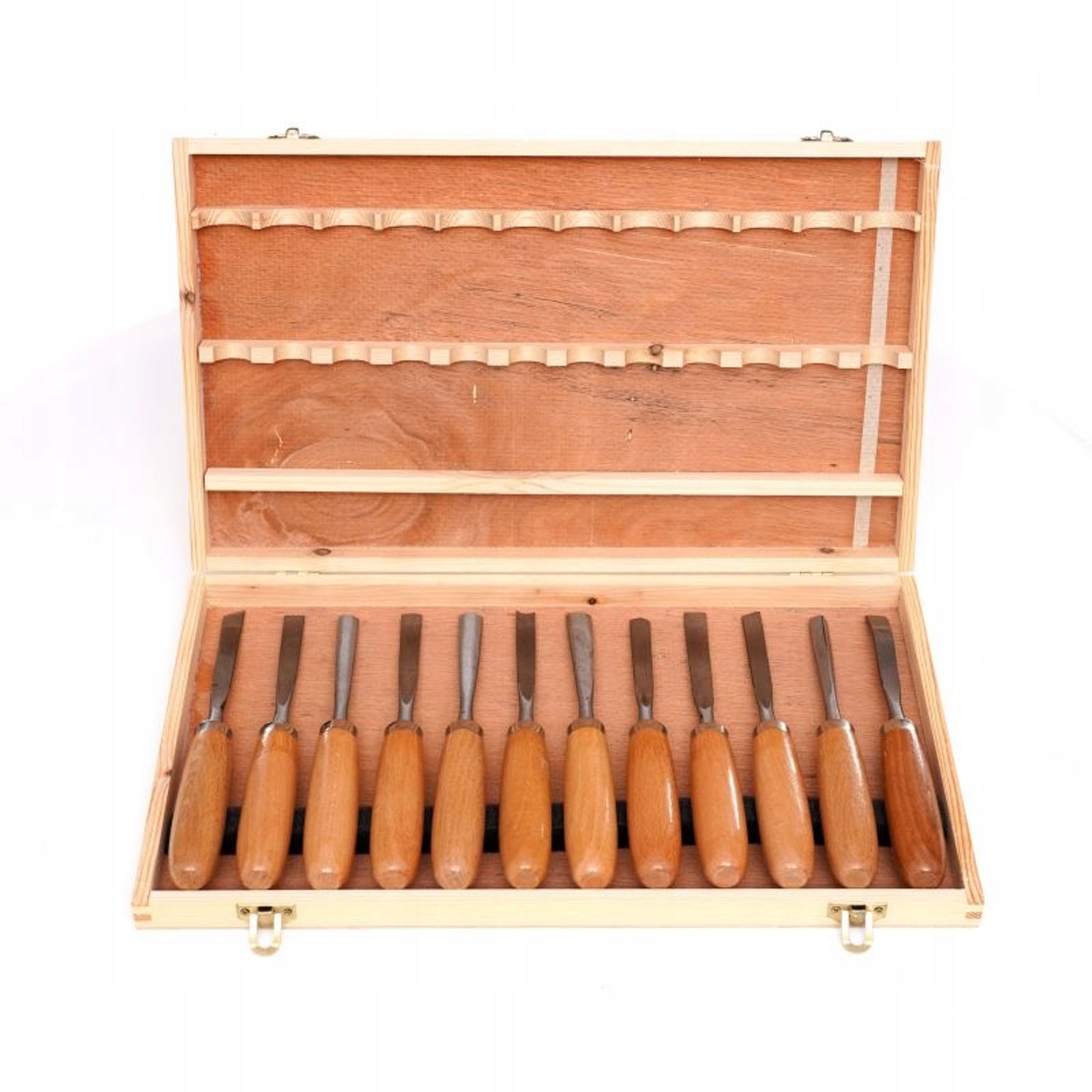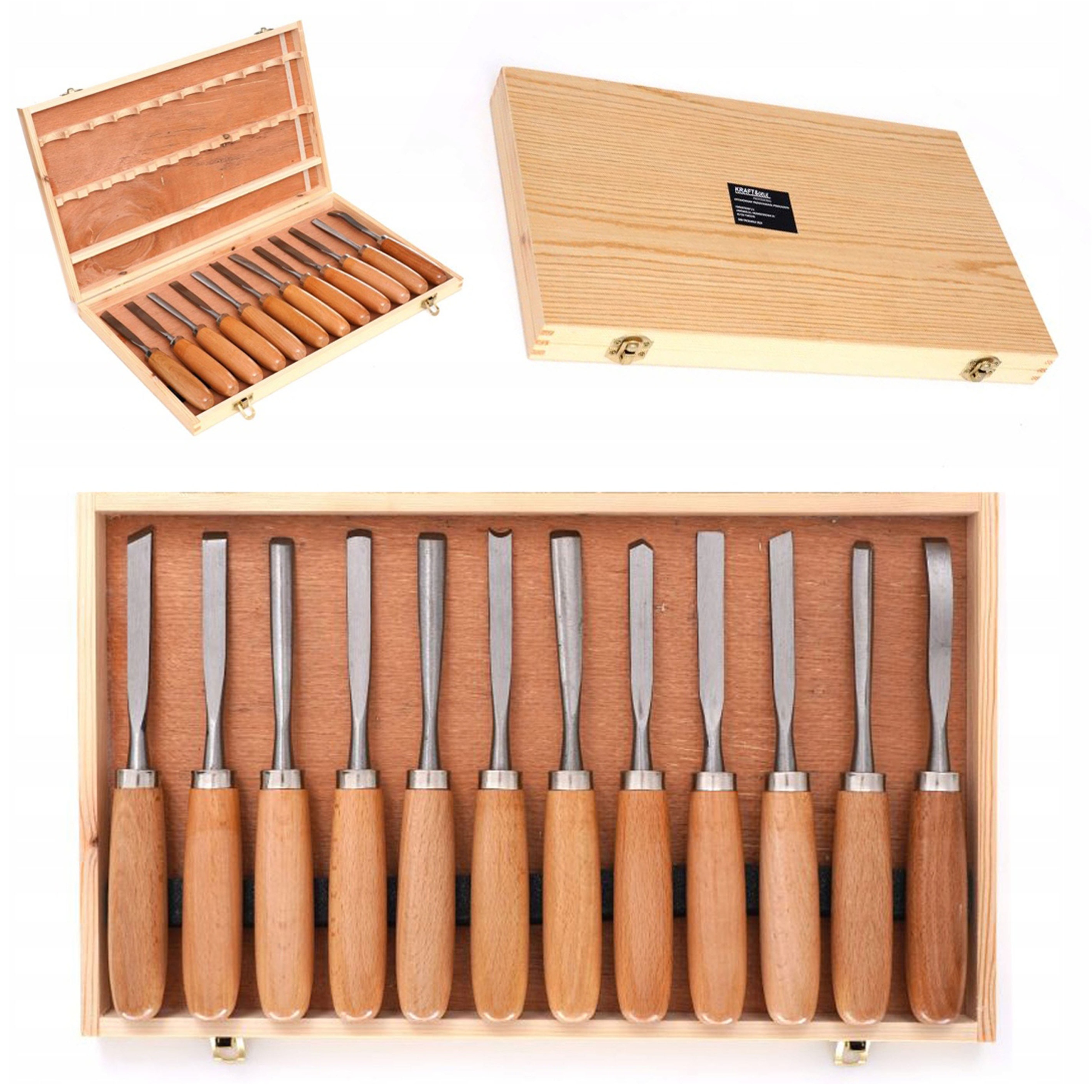 Валіза Kraft&Dele Carving Chisels Set 12 дає змогу працювати з деревом точно, зручно та в будь-якому стилі різьби. У набір входять різні типи стамесок, тому ви можете робити надрізи, канавки, отвори та деталі різноманітної форми. Леза з хромомарганцевої сталі з твердістю 59 HRc забезпечують ефективну та плавну роботу. Дерев'яні ручки, виготовлені з мореної, вощеної деревини бука, гарантують міцне захоплення та високий комфорт використання. Все поставляється в естетичній дерев’яній коробці, яка полегшує зберігання та впорядкування інструментів.
