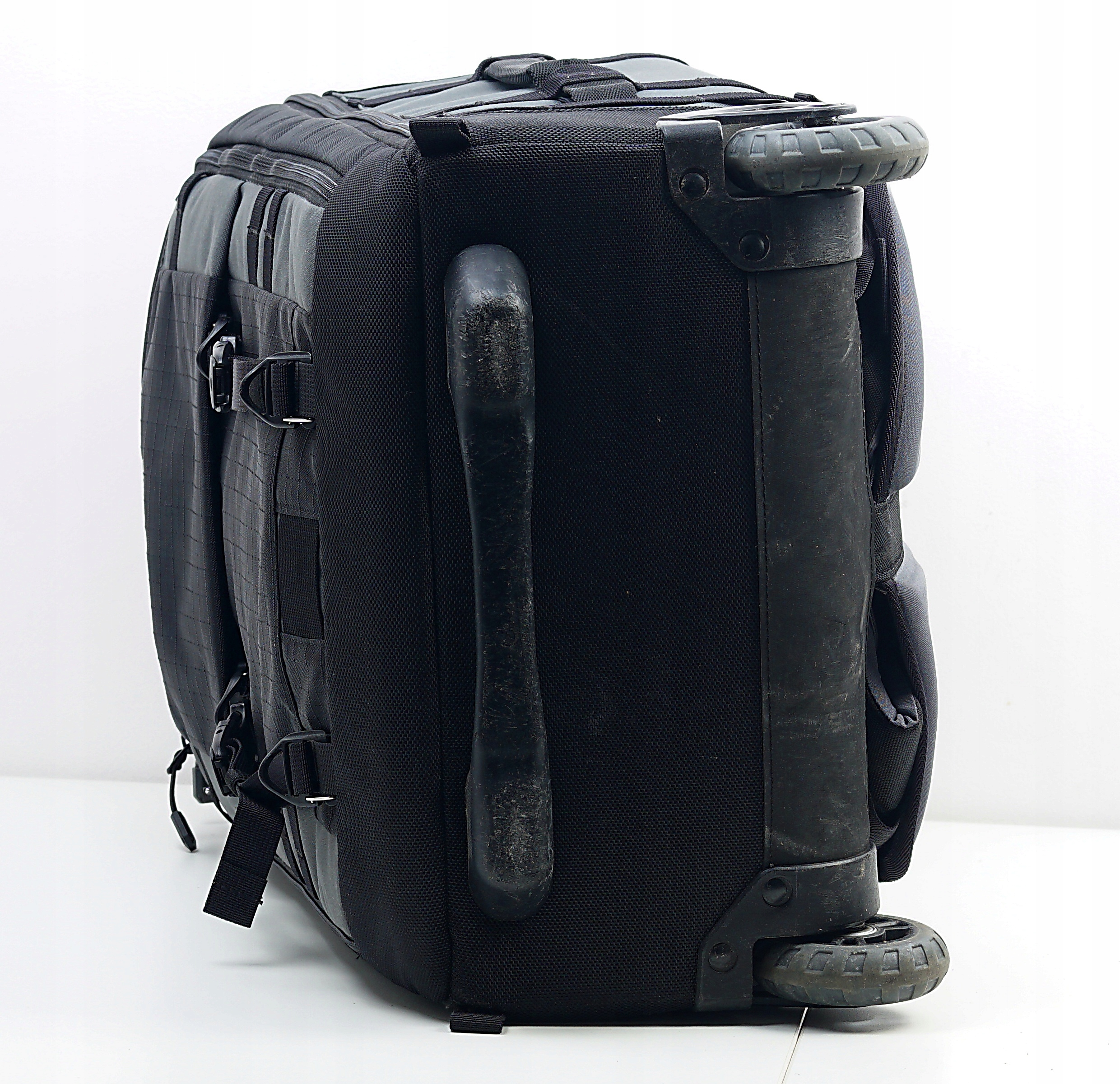 - Висувні плечові ремені та стегновий ремінь перетворюють валізу на рюкзак