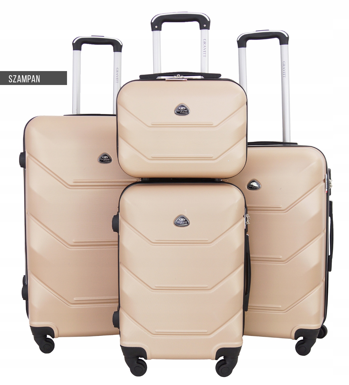 Валізи, представлені нижче, виготовлені з матеріалу ABS. Вони мають внутрішнє відділення та ремені для кріплення, які допомагають упорядкувати ваш багаж. Чотири поворотні колеса полегшують їх переміщення, а зручні бічні ручки полегшують перенесення.