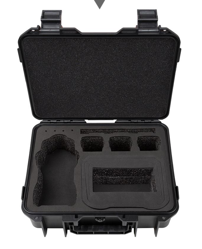 - тримає: дрон з акумулятором та доп. акумулятори, зарядний пристрій, кабелі, пропелери та інші аксесуари