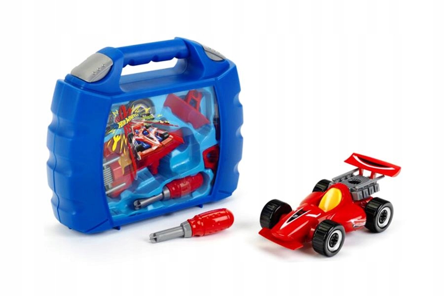 Цей набір походить із серії іграшок Klein, створених за ліцензією Hot Wheels, яка є популярною серією іграшок, призначених переважно для хлопчиків. Цей дивовижний набір складається з синьої валізи, яка одночасно є пакетом і транспортером для зберігання іграшки, і червоної гоночної машини "F1-Grand Prix" для поворотів. У набір входить автомобіль для повороту, шасі та деталі кузова, спойлери, водійське сидіння, двигун, кріпильні гвинти, наклейки та викрутка, а також завдяки відповідному золоту