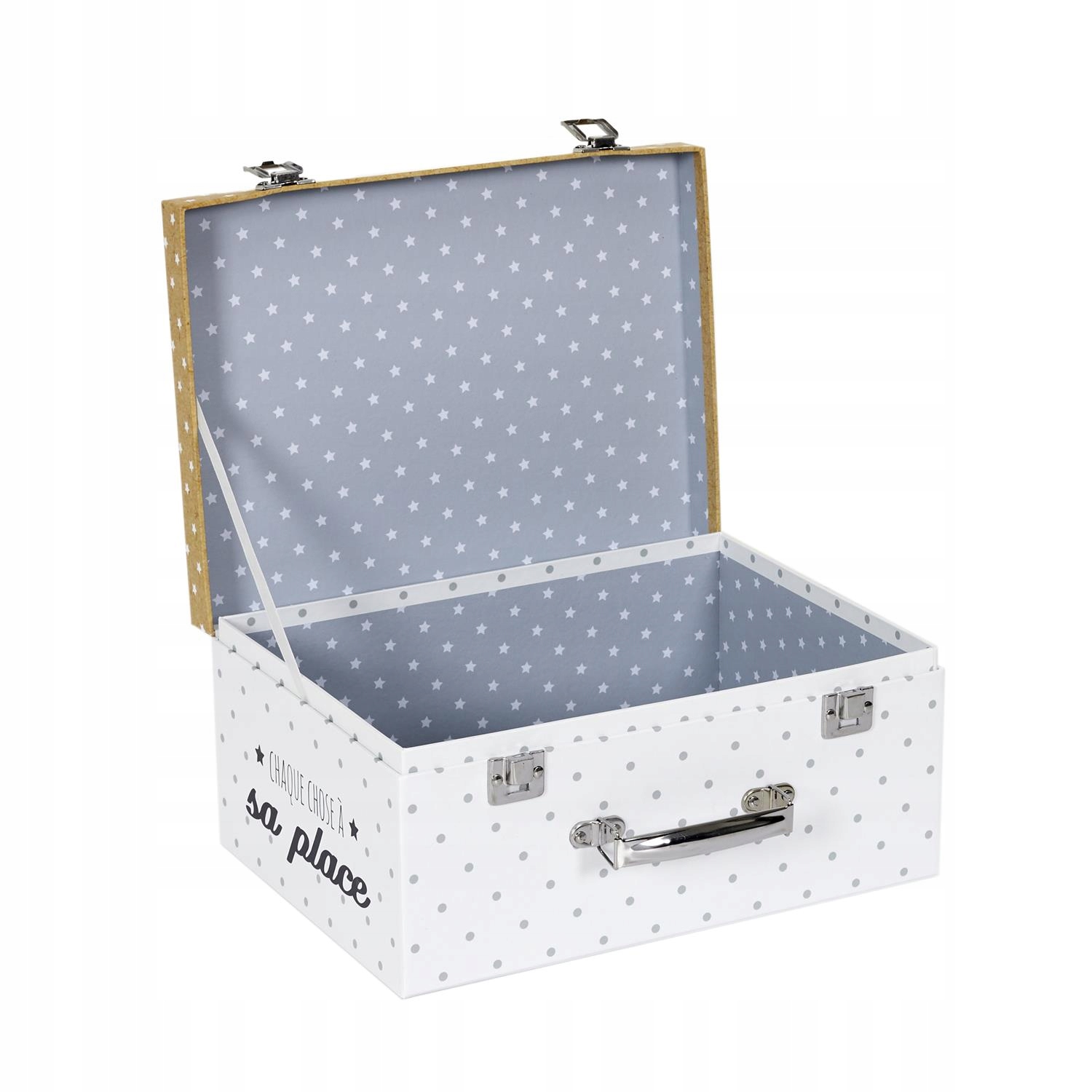 Ці білі валізи вдосконалять ваше шкільне обладнання. Завдяки конструкції та способу закривання вони виглядають дуже розкішно, але завдяки картону валізи легкі та зручні для транспортування. Він також ідеально підходить для зберігання одягу чи іграшок на полиці чи під ліжком.